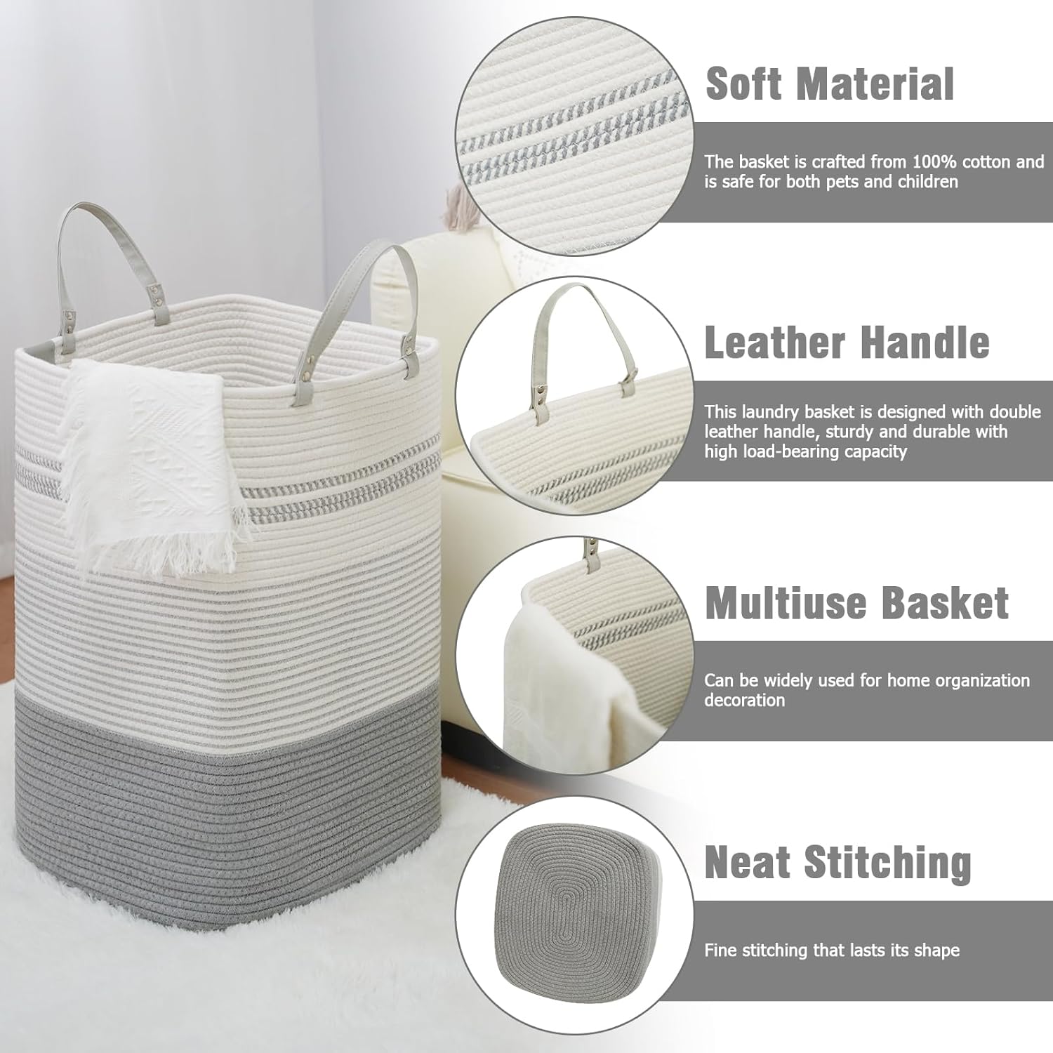 - 100% Woven Laundry Basket: Made from pure cotton grown in regions with 3,000+ hours of sunlight annually, making it softer and more breathable than regular cotton. Crafted from food-grade safe material, it’s perfect for storing baby products, pet snacks, or delicate items. This eco-friendly, decorative hamper adds style while keeping your home organized