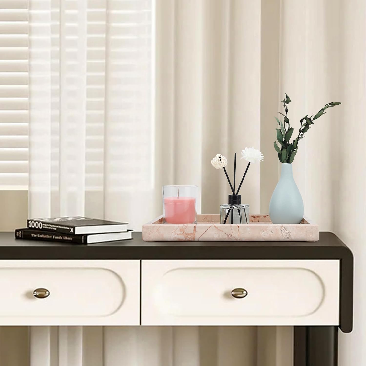 Marble Bathroom Tray,Pure Natural Vanity Tray,Marble Trays for Kitchen Counter Non-Ceramic/Non-Resin,Stone Tray 12 x 8 inch (Pink)