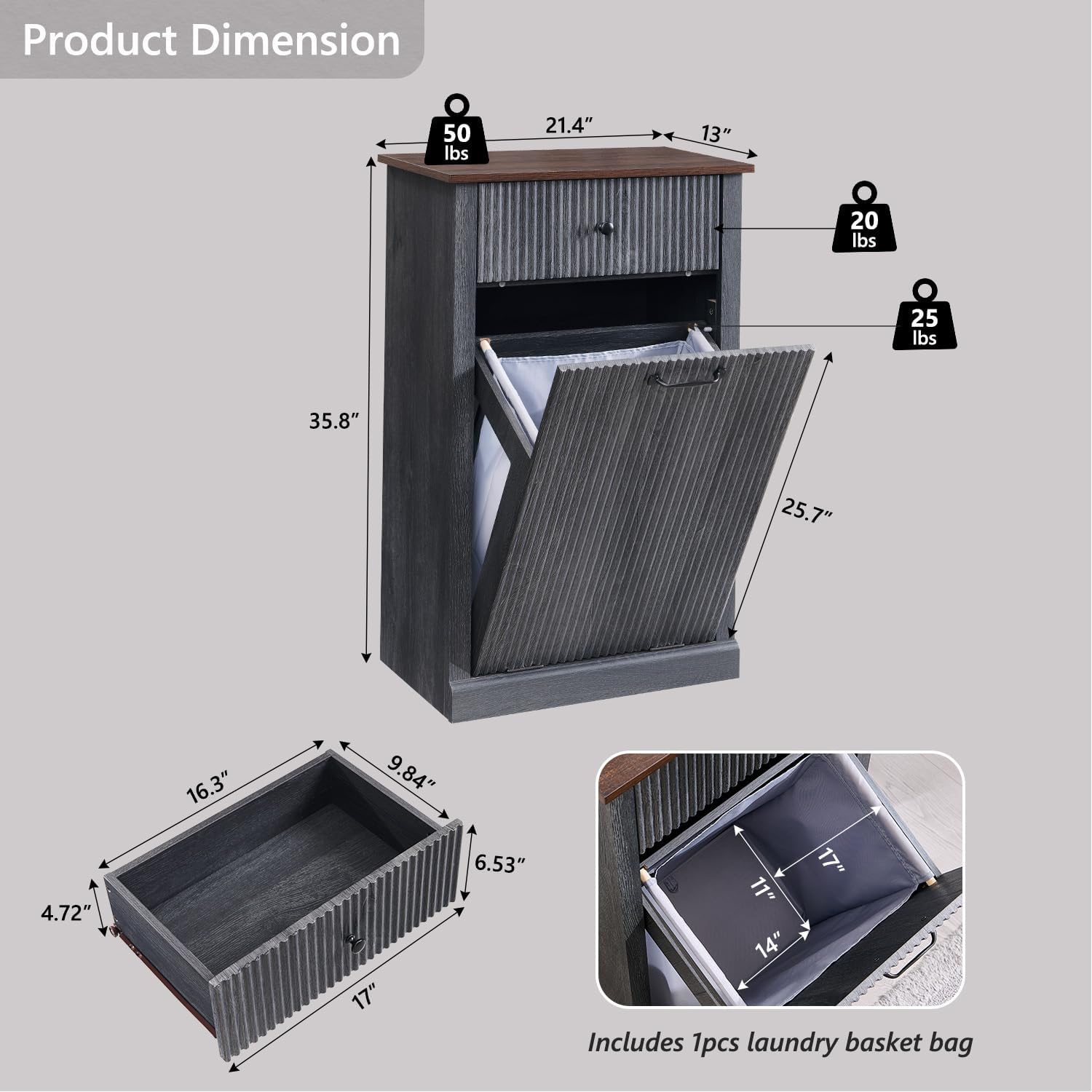 - Special Feature : Pull out drawer, Tilt out laundry hamper cabinet, Heavy Duty, Sturdy