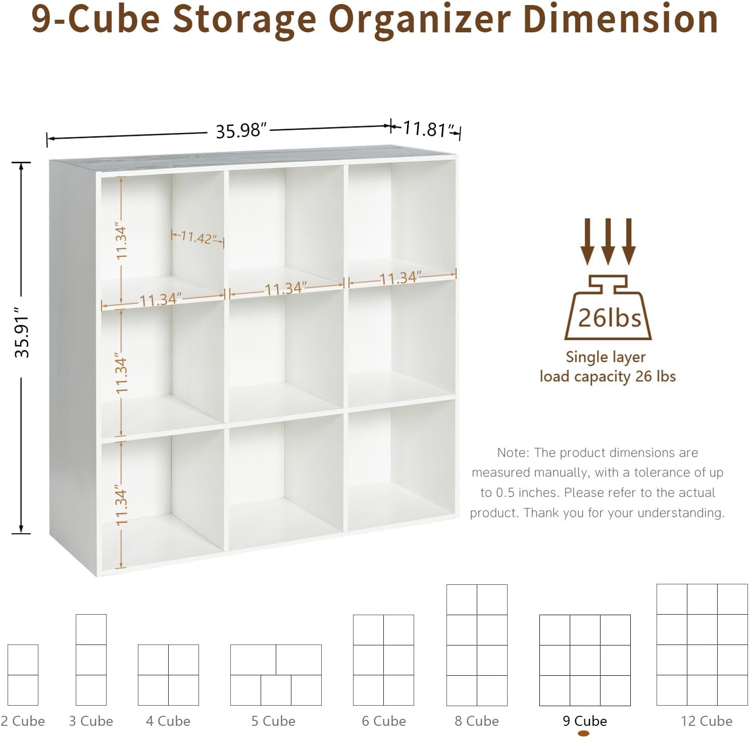 Wooden 9-Cube Storage Organizer with Closed Back Panel, 11in Cube Shelf Opening, Bookshelf, Display Shelf,Closet Cabinet for Home and Office,Embossed White