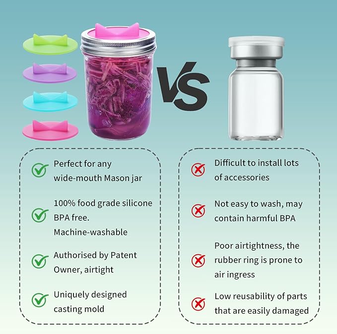 - The Lids made of the highest quality silicone material. During the fermentation process of vegetables, gas is generated, leading to an increase in internal pressure. Gas can overflow from the 6mm opening at the top. The anhydrous exhaust valve remains closed, preventing external air from entering the inside of the bottle. So as to ensure that pickled Chinese cabbage will not deteriorate.
