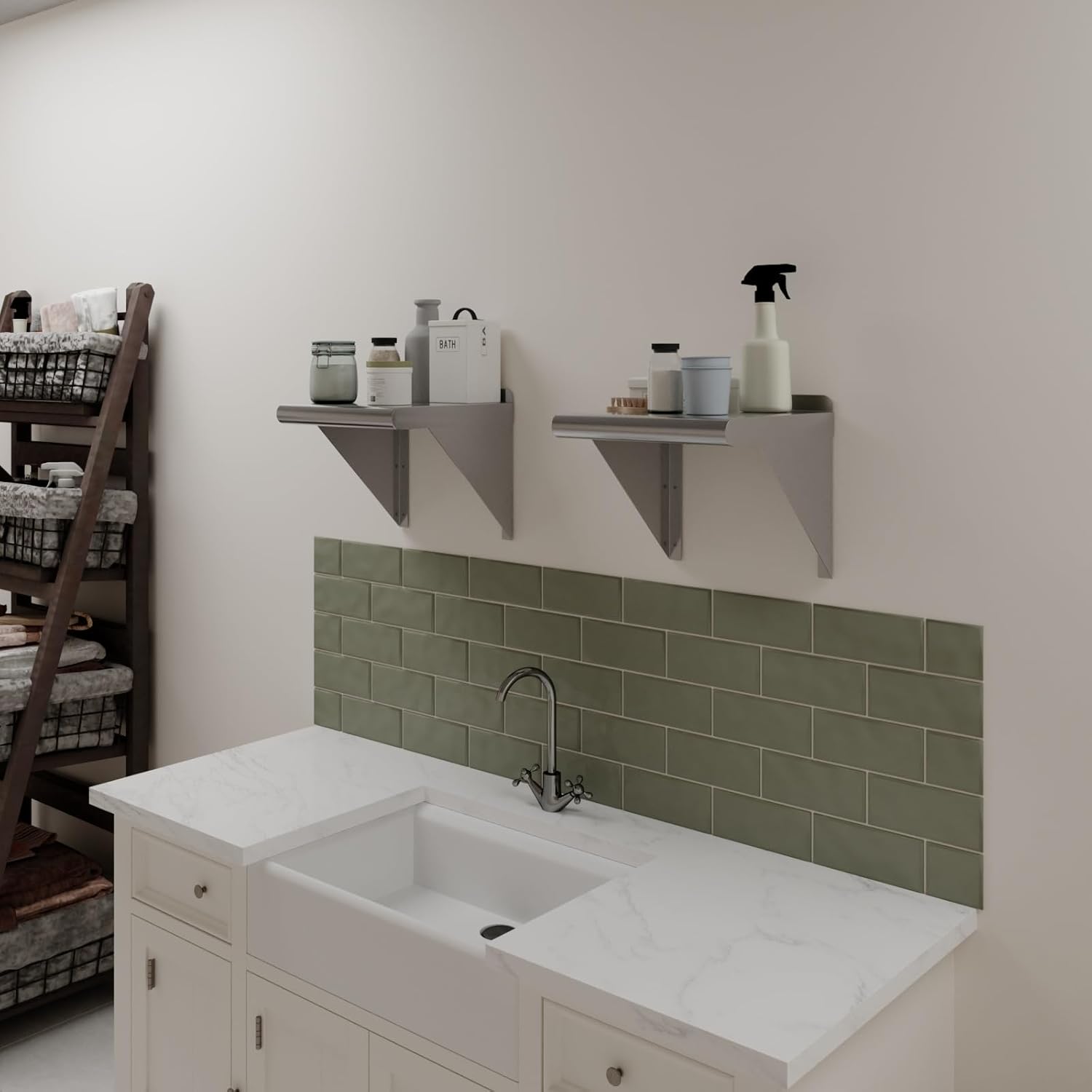- This corrosion-resistant wall mount shelf can handle anything you throw at it and will last for years to come. Easy to clean and sterilize, metal shelves are superior to wood or glass. Food and liquid won’t get stuck or ruin the integrity of the surface. Easily wipe away excess with no fuss, mess, or contamination.