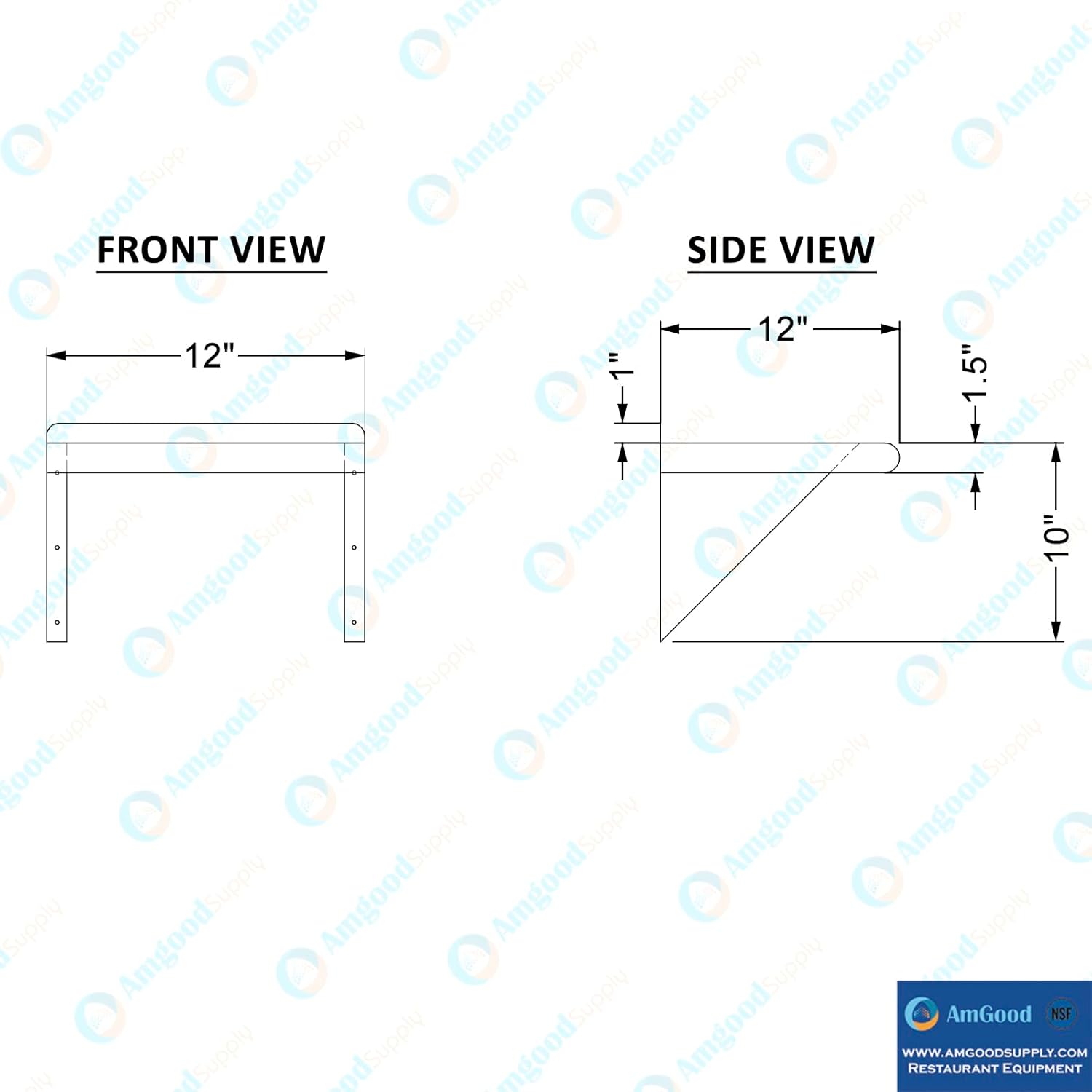 AmGood 12 in. x 12 in. Stainless Steel Wal Mount Shelf. Commercial/Home. Kitchen, Restaurant, Garage, Laundry, Utility Room. NSF