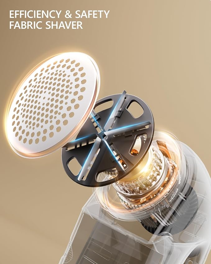 - FEATURES & BENEFITS: The sleek matte finish design shaver with a 2.5 inches shaving head that has 3 different sizes of mesh for trimming of lint, pill, fuzz of all sizes. It also with a comfortable grip handle and extra large lint collector. Blades upgraded to 6-blade blades for greater efficiency and this is replaceable. And the lint shaver with a safety lock design. If you or your children opens the shaving head accidentally, the safety lock will start and the blades will not turn.
