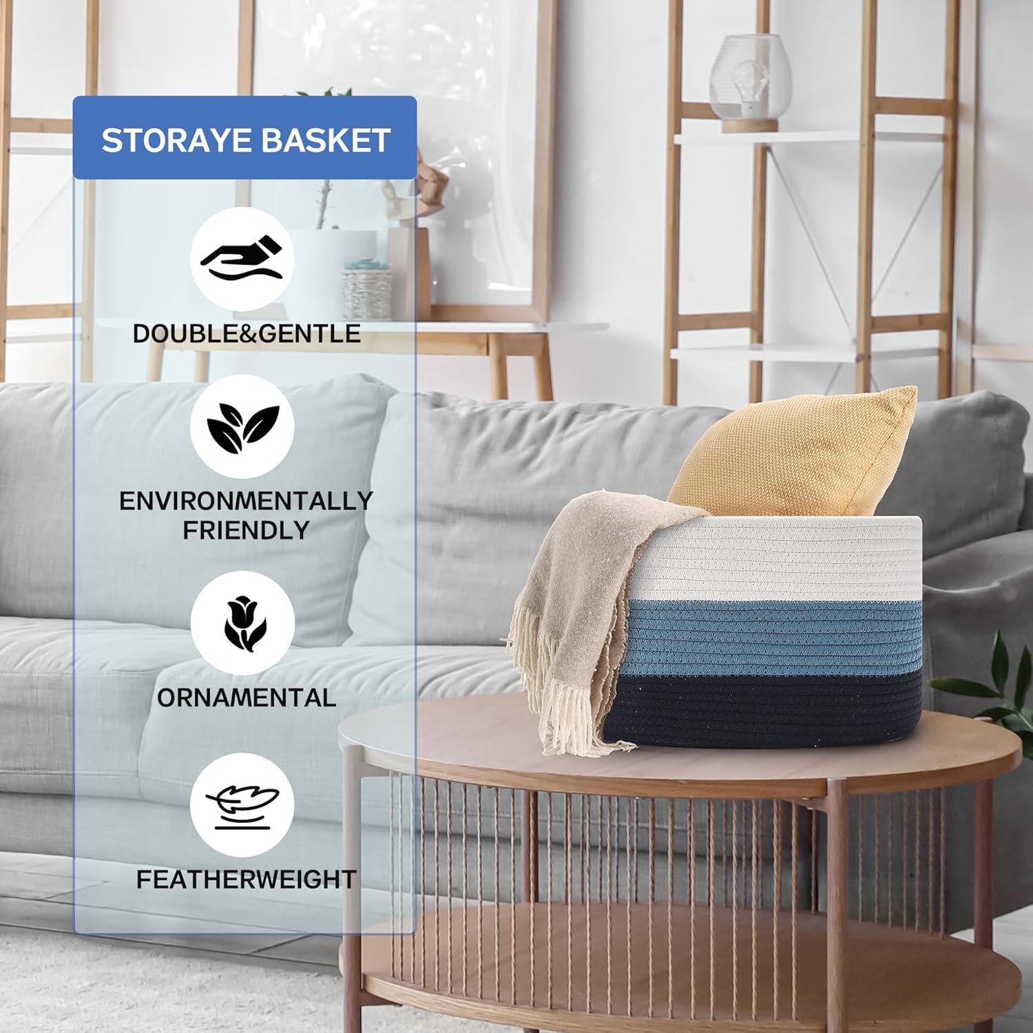 - High-quality natural cotton and linen rope woven, durable and sturdy: Made of high-quality natural cotton and linen rope material, these woven baskets for shelves are not only sturdy and durable, but also keep their shape well, suitable for daily use. Whether it is easy to store daily items or load-bearing items, it can maintain the stability and shape of the basket.