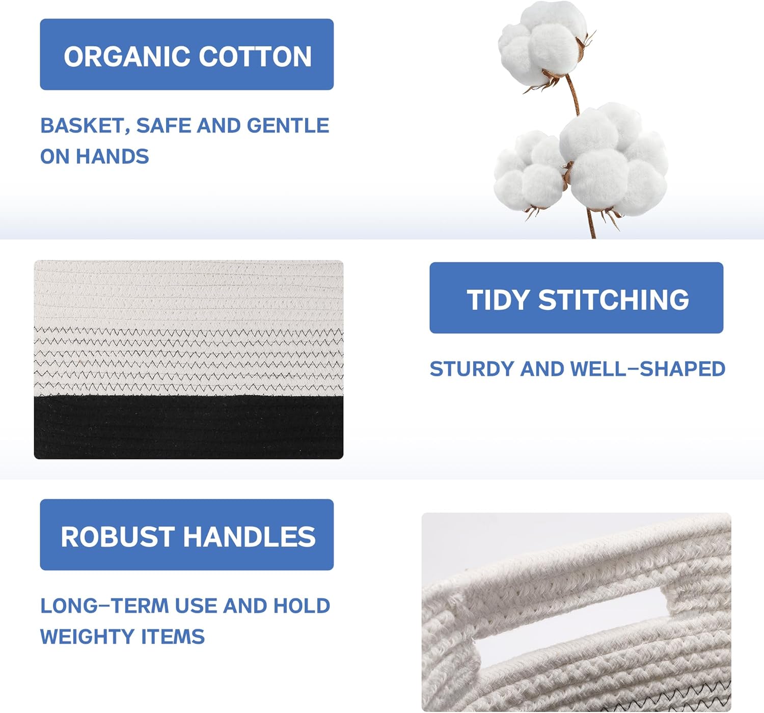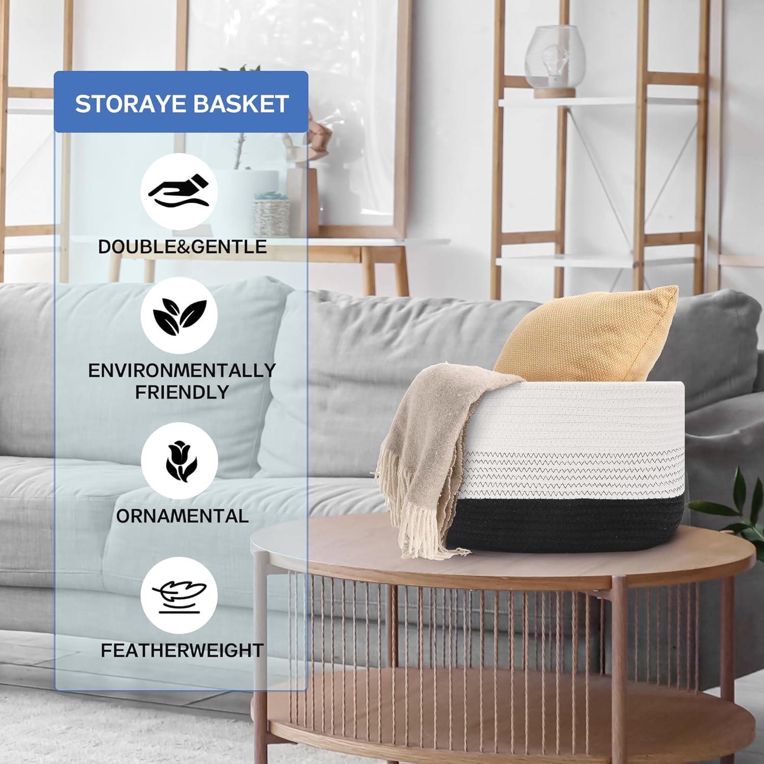 - High-quality natural cotton and linen rope woven, durable and sturdy: Made of high-quality natural cotton and linen rope material, these woven baskets for shelves are not only sturdy and durable, but also keep their shape well, suitable for daily use. Whether it is easy to store daily items or load-bearing items, it can maintain the stability and shape of the basket.