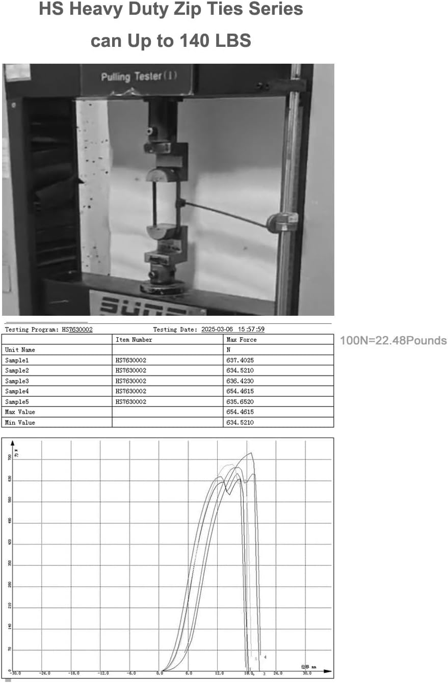 - Details: premium nylon 66,94v-2 fire and UV resistant,UL and Rohs certification,120 lbs tensile strength industrial standard,can up to 140 lbs,high performance of all HS zip ties
