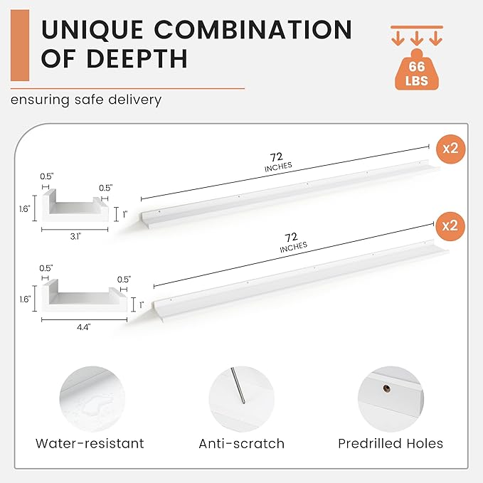 - 【Versatile and Multi-Functional】These shelves aren’t just for photos! FLYJOE ledge shelves can be creatively used as kids' bookshelves, display shelves for collectibles, spice racks in the kitchen, or even over-the-toilet storage in the bathroom. Their adaptability makes them a practical choice for any room in your home