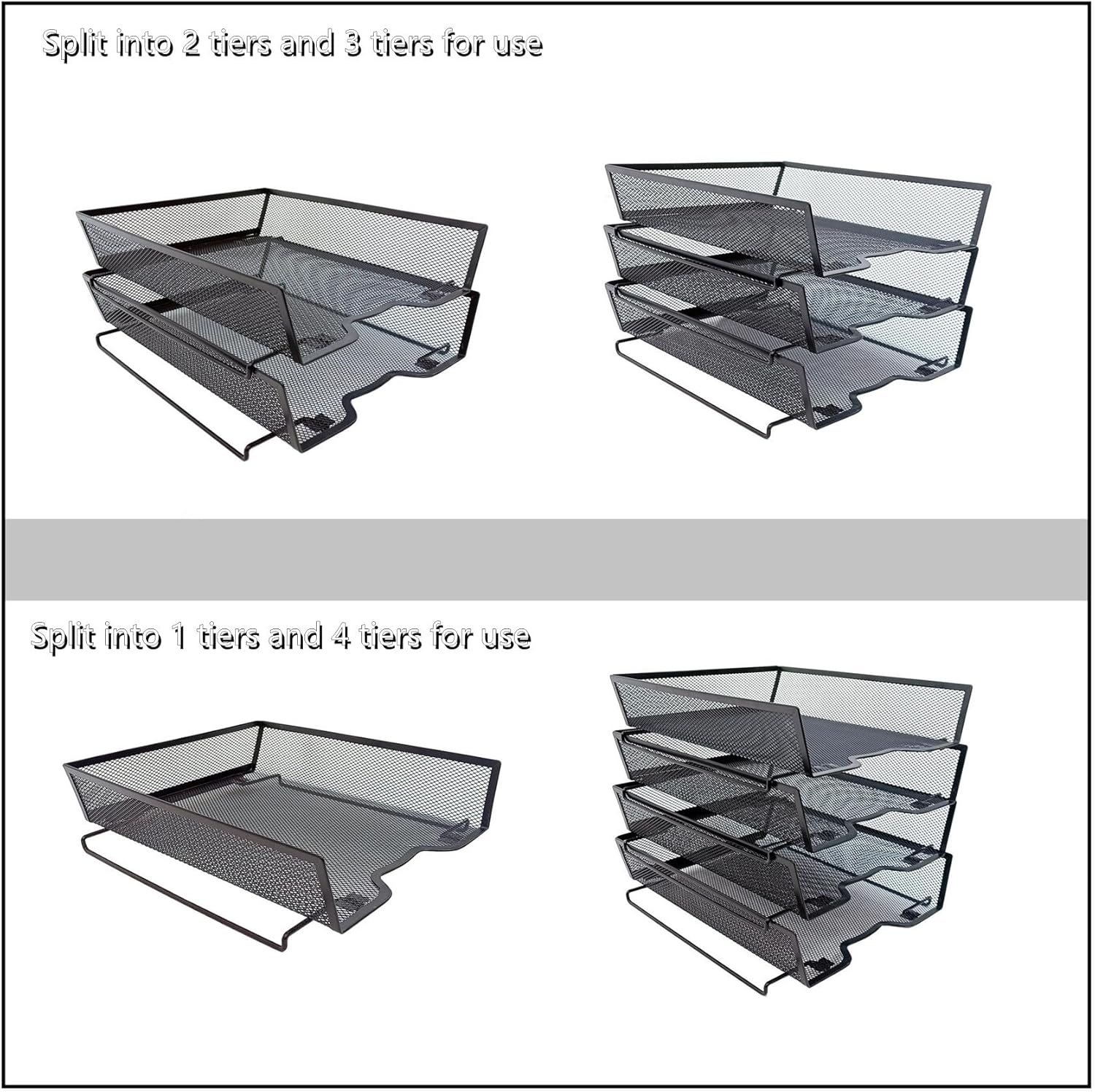 - The trays can be rearranged and combined, and can be combined into two products: 2-tier file rack and 3-tier file rack.