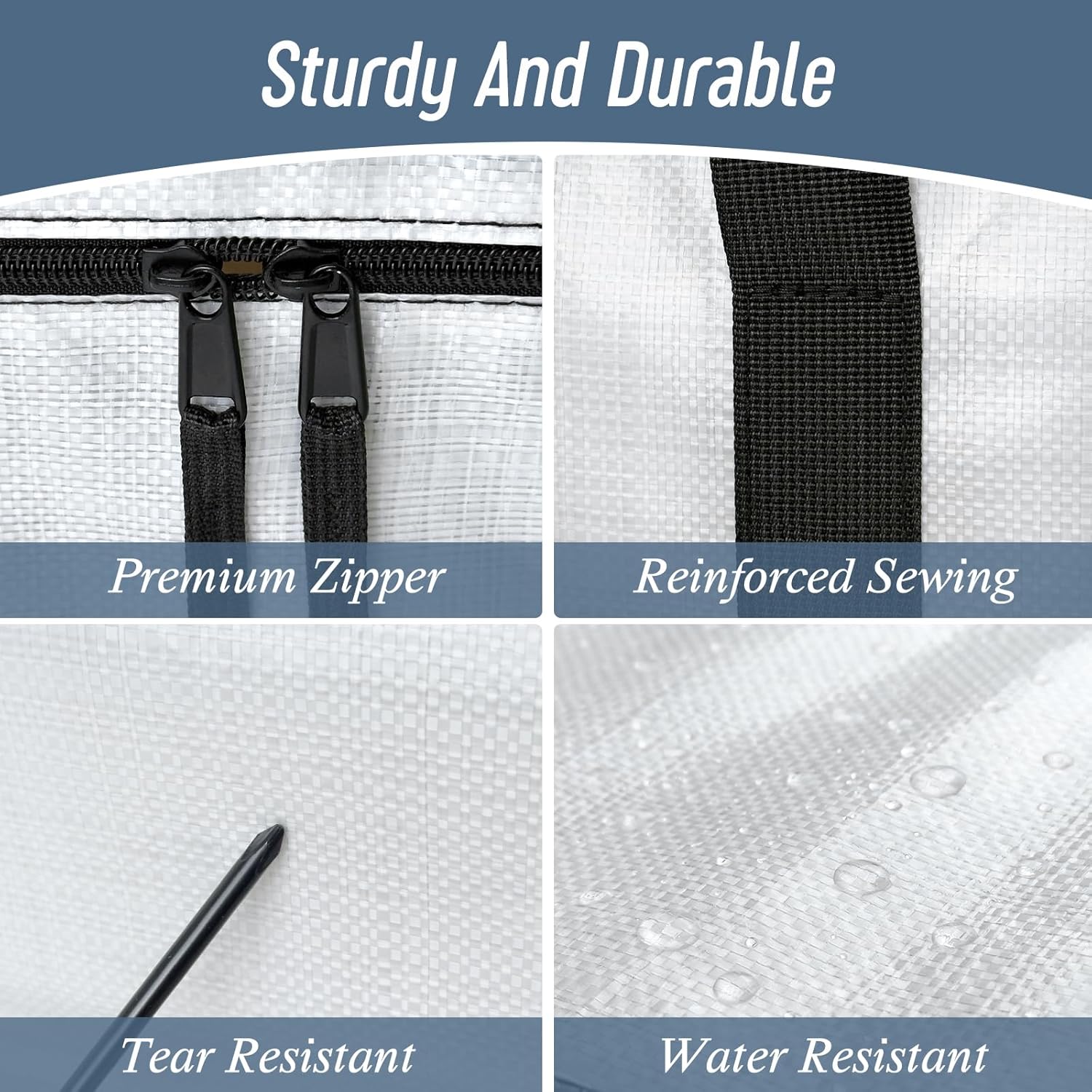 12 Pack Extra Heavy Duty Large Moving Bags with Strong Zipper & Comfortable Handles, Sturdy & Durable Clothes Storage Bags Totes Bins, Packing Moving Boxes for College Supplies, White