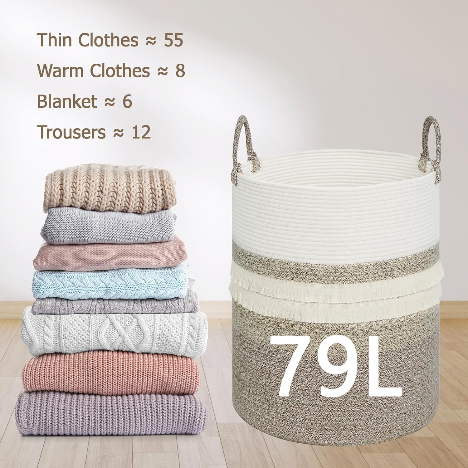 - Versatile Storage Solution: This tall woven cotton storage basket isn’t just for laundry! It’s the perfect blanket basket, toy organizer, or even a decorative piece in your living room. Whatever your needs, this large, multi-functional basket brings both style and practicality into your space