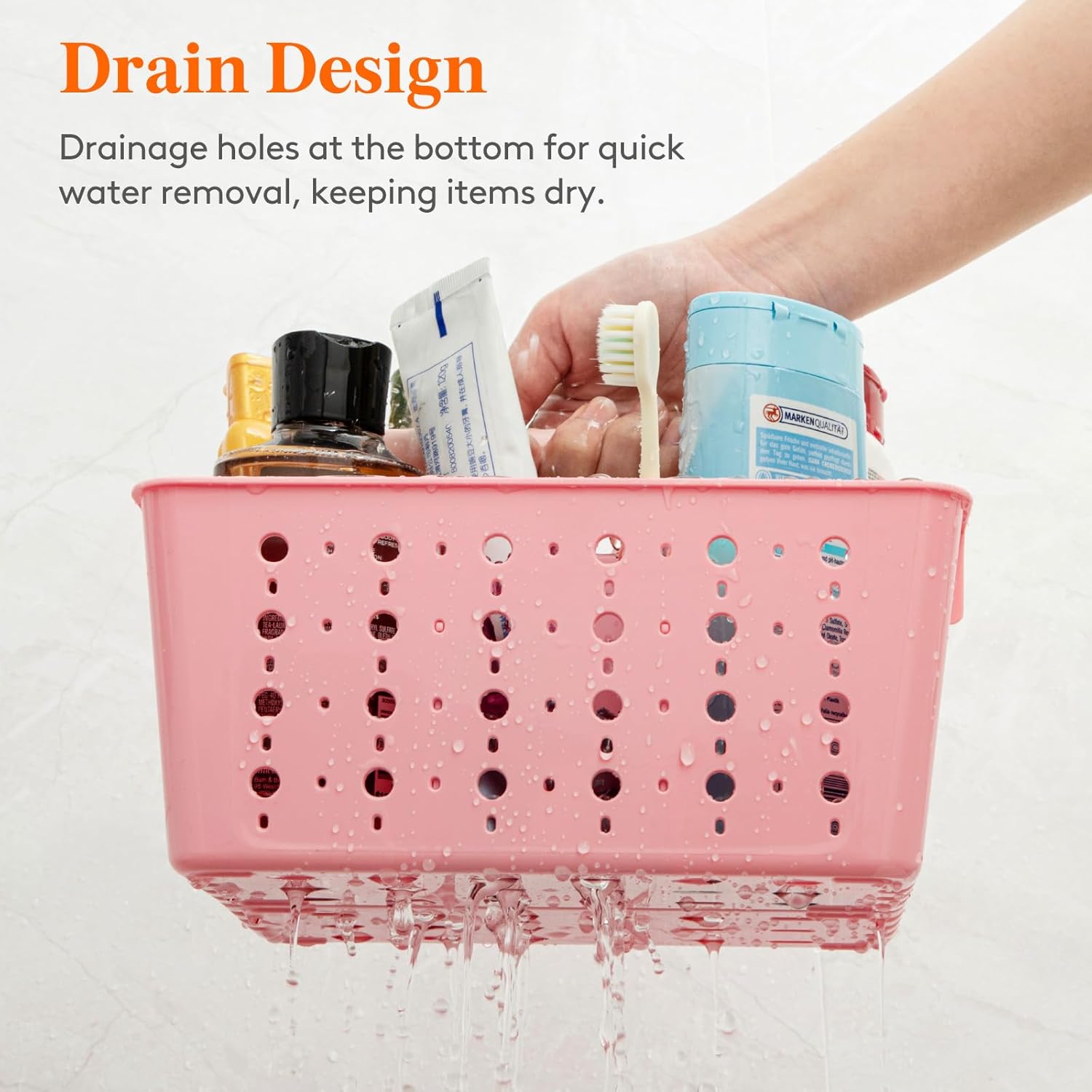 Lifewit Portable Shower Caddy with Handle, 3 Pcs Plastic Shower Caddy Dorm with Holes, Clean Organizer Basket for Bathroom, College, Dorm Room Essentials, Pink