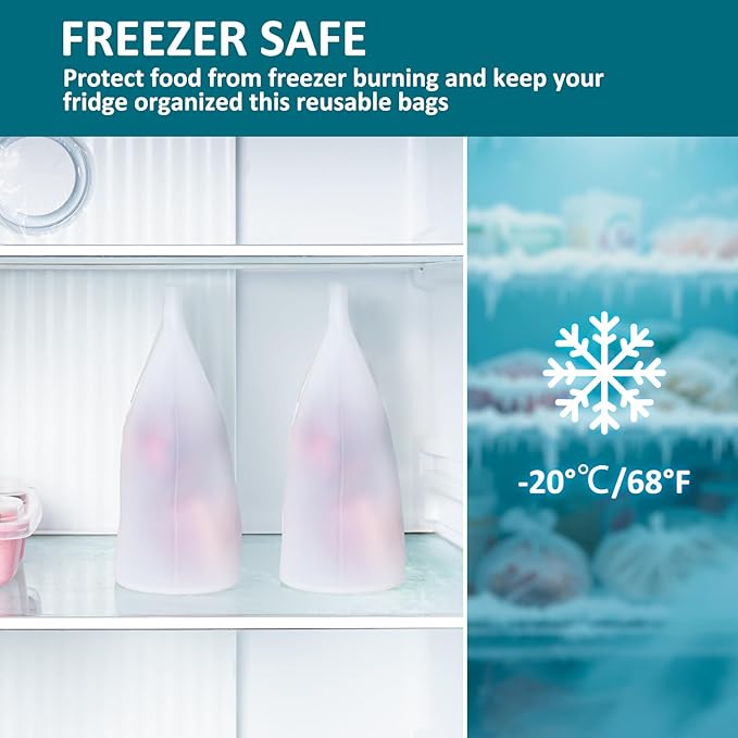 - PURE SILICONE - SAFE & DURABLE: Crafted from 100% food-grade silicone, our reusable ziplock bags are free from PVC, lead, chlorine, phthalates, and BPA. Non-toxic and odorless, they provide a safe storage option for your family’s food. Built to last, these silicone bags feature a thick, durable design for long-term use. Lightweight and easy to handle, they offer a convenient storage solution for everyday needs