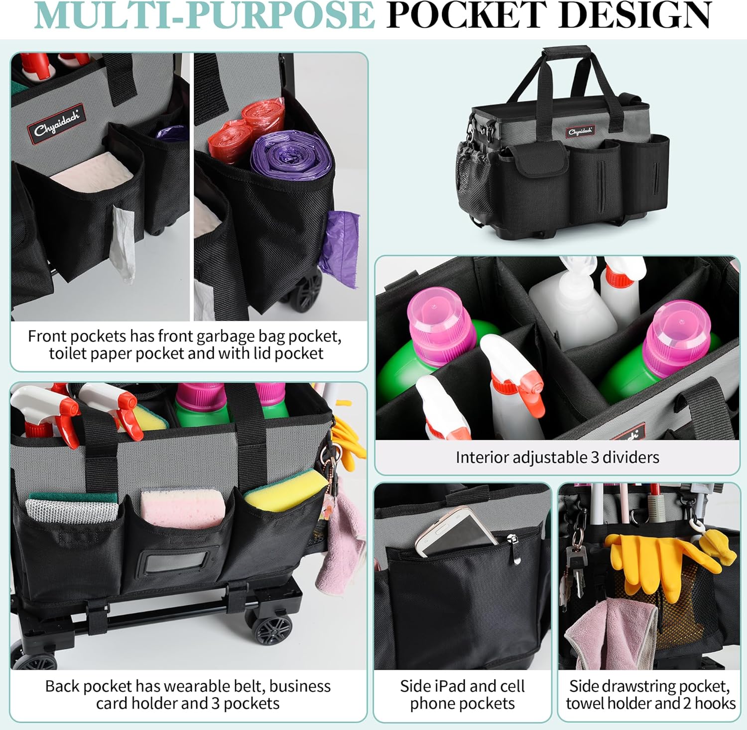 - Versatile Cleaning Tote Caddy: Rolling cleaning caddy is perfect for professional cleaners, housekeepers, and domestic staff use. cleaning caddy bag organizes cleaning supplies, tools, and doubles as a car cleaning kit, gardening bag, camping and picnic, or horse grooming bag