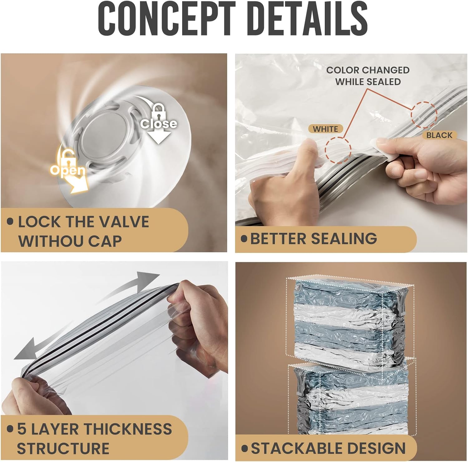 - Save More Space: Our jumbo vacuum storage bags have trapezoidal three-dimensional structure. The stable bottom layer is easier to place when storing clothes, and the storage capacity of vacuum storage bags for comforters and blankets is larger. We focus on providing you with cozy and better home life by better organizing your clothes and sorting your bedding's