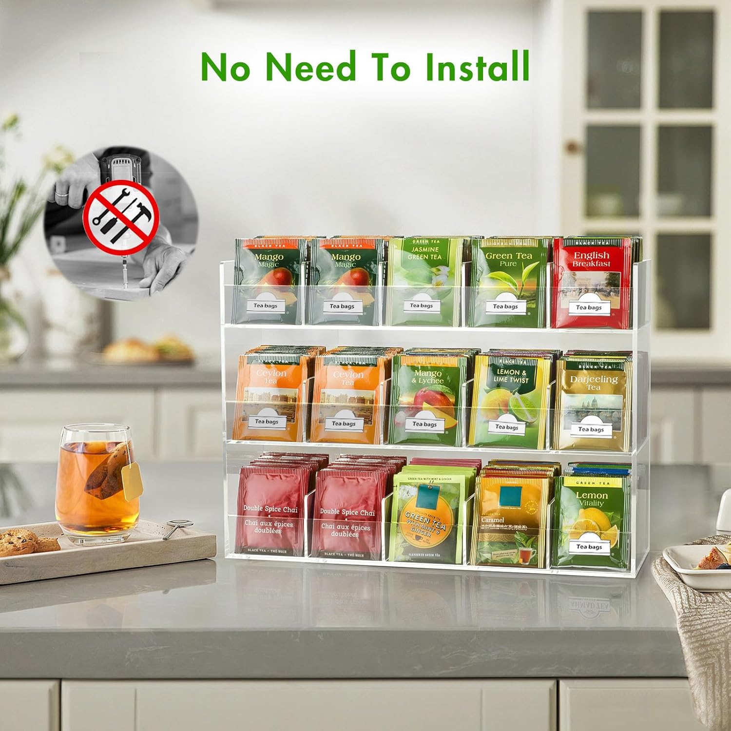 BEYGORM Acrylic Tea Bag Organizer for 270 Tea Packets, No Assembly Required Display Holder for Countertop, Vertical Tea Bag Caddy for Cabinet, Tea bar Accessories, Teabags Storage Containers