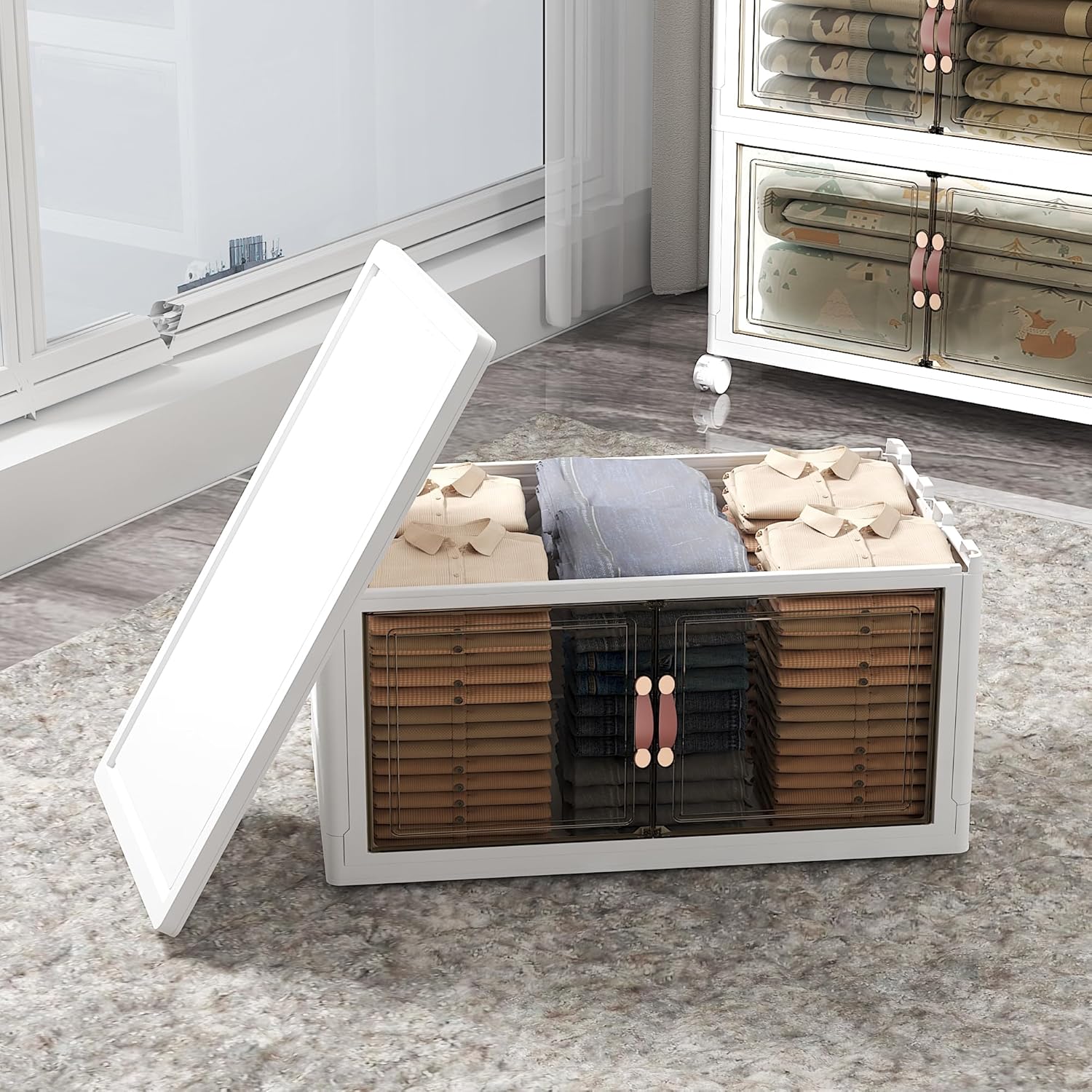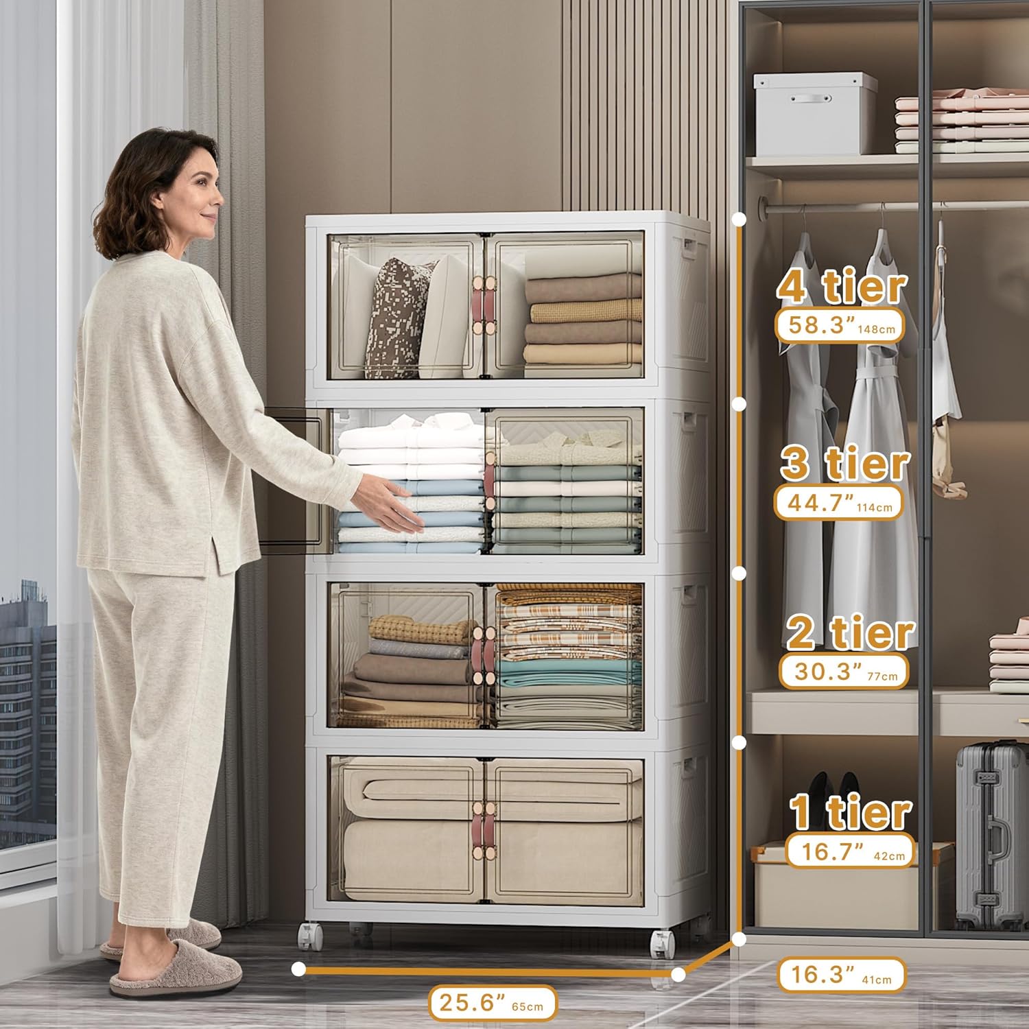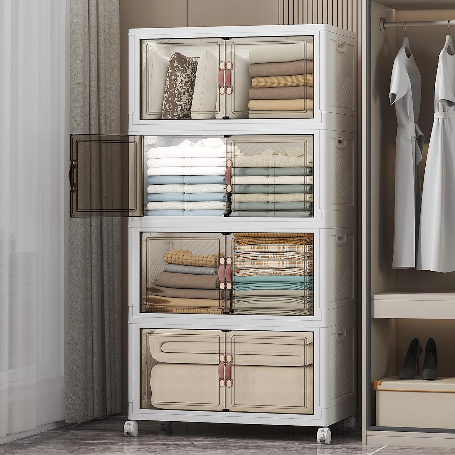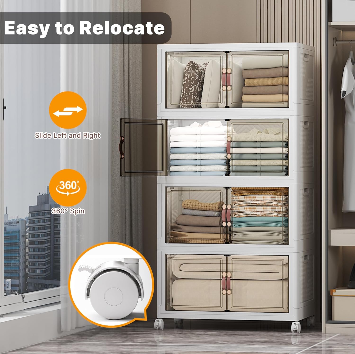 Extra Large Stackable Storage Bins with Lids & Wheels & Door, 448QT-112QT/28GAL*4Pack Foldable Collapsible Closet Organizers, Plastic containers drawers for bedroom Dorm