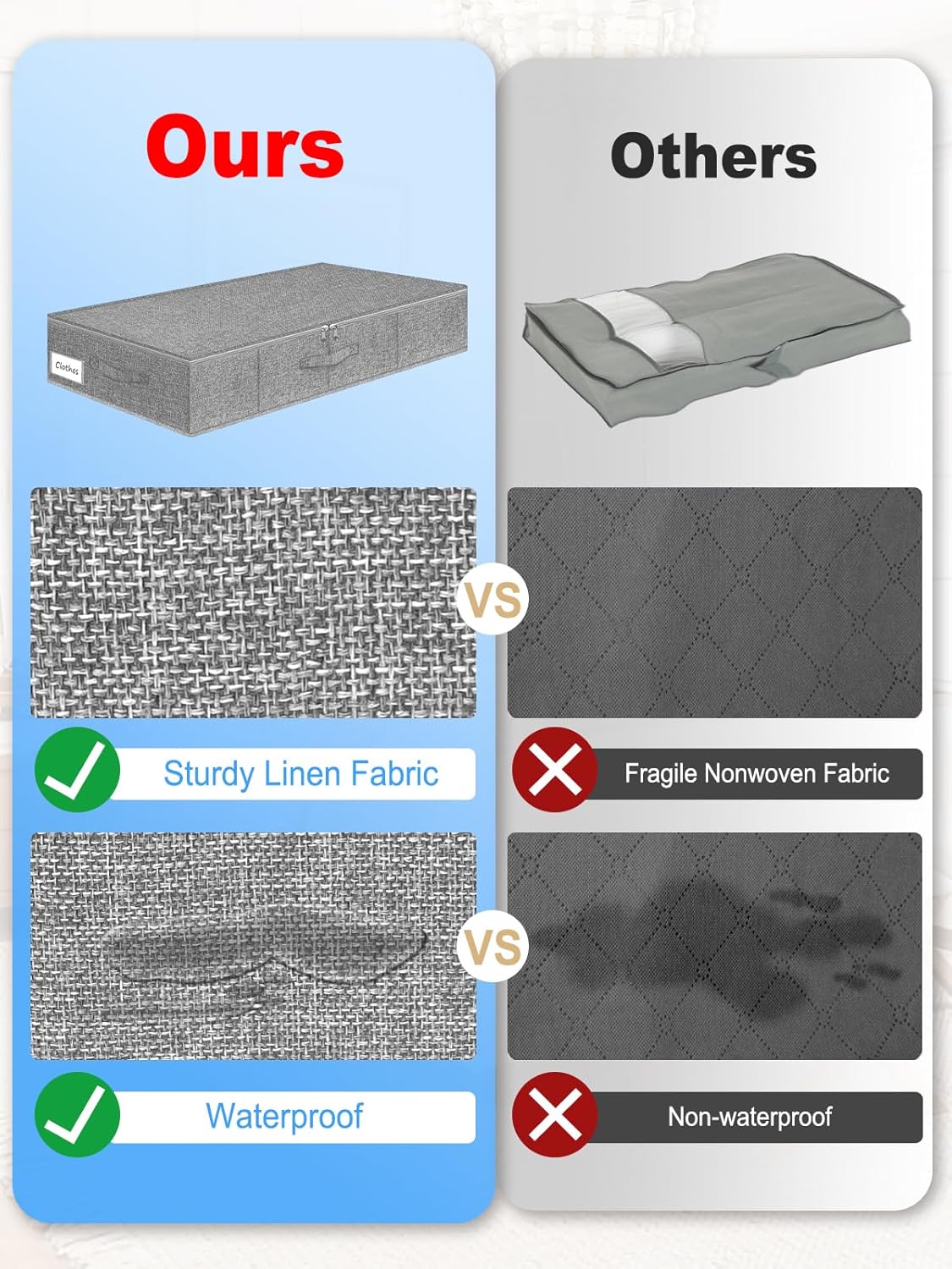 - Sturdy & Easy Access – Made with strong PP boards for a firm shape, these under-bed storage bins slide effortlessly. A three-sided zipper with dual sliders ensures quick and convenient access to your belongings.