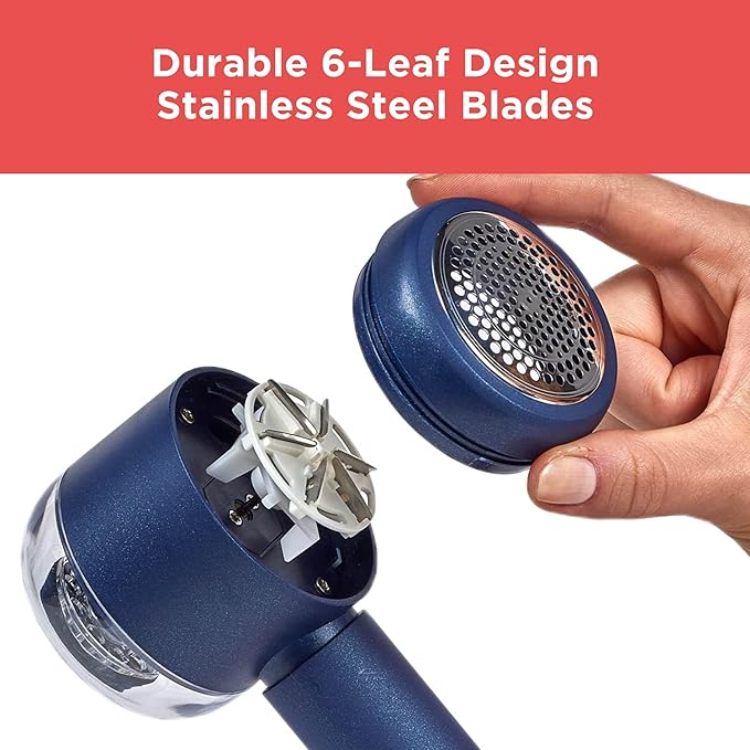 - SAFE ON MOST FABRICS – 6 durable, sharp stainless-steel blades for increased efficiency. Revives clothes, blankets, upholstery, drapery, and more, restoring a fresh, smooth look.