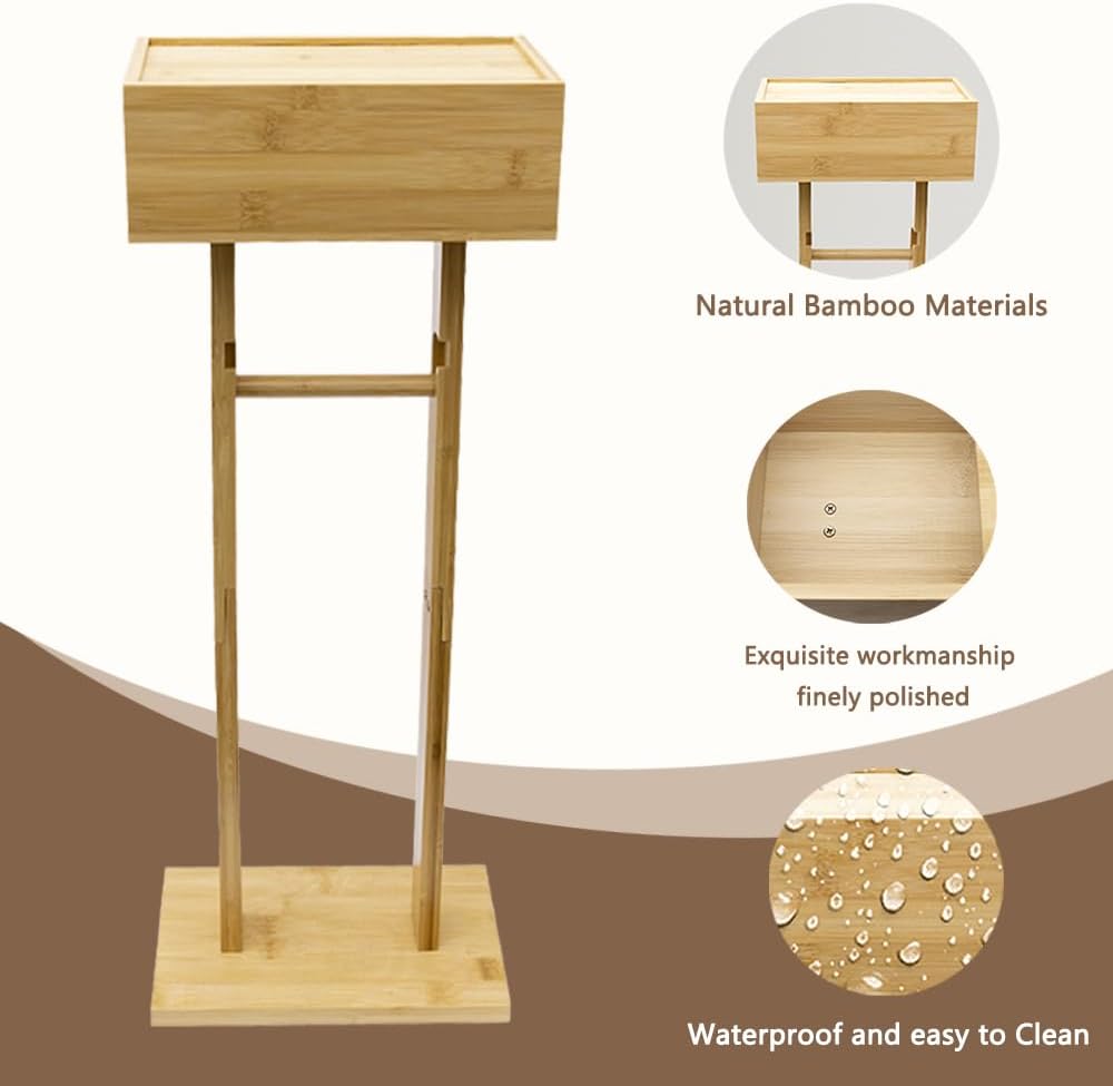 Bamboo Toilet Paper Holder Stand, Free Standing Toilet Paper Holder Tissue Roll Stand Rack for Small Space Bathroom and Spare Rolls Storage