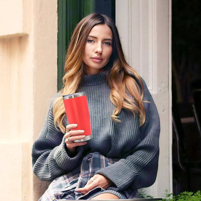 20 oz Tumbler with lid Double Wall Vacuum Insulated Tumblers Stainless Steel Coffee Mug Travel Coffee Tumbler Powder Coated Tumbler Cup Keep Hot&Cold- (Red 1 Pack)