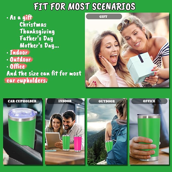20 oz Tumbler with lid Double Wall Vacuum Insulated Tumblers Stainless Steel Coffee Mug Travel Coffee Tumbler Powder Coated Tumbler Cup Keep Hot&Cold - (Green 12 Pack)