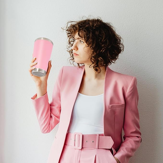 20 oz Tumbler with lid Double Wall Vacuum Insulated Tumblers Stainless Steel Coffee Mug Travel Coffee Tumbler Powder Coated Tumbler Cup Keep Hot&Cold - (Pink 12 Pack)