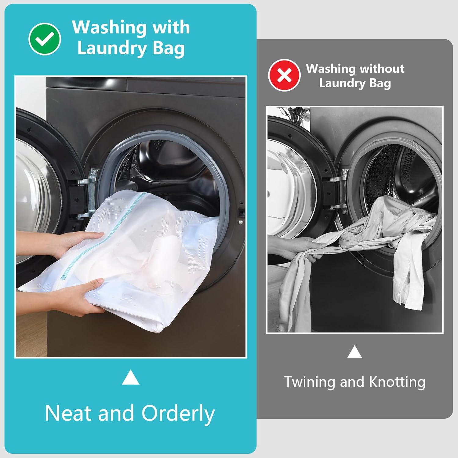 - 【Prevent Damage】The laundry bag for delicates is a perfect protector from wear and tear in washing machine, keeping your garments away from tangling, snagging or deforming in washer. Please slide the zipper head into the cover to keep it from catching and unzipping during washing and drying cycle, ensuring a quiet and safe wash.
