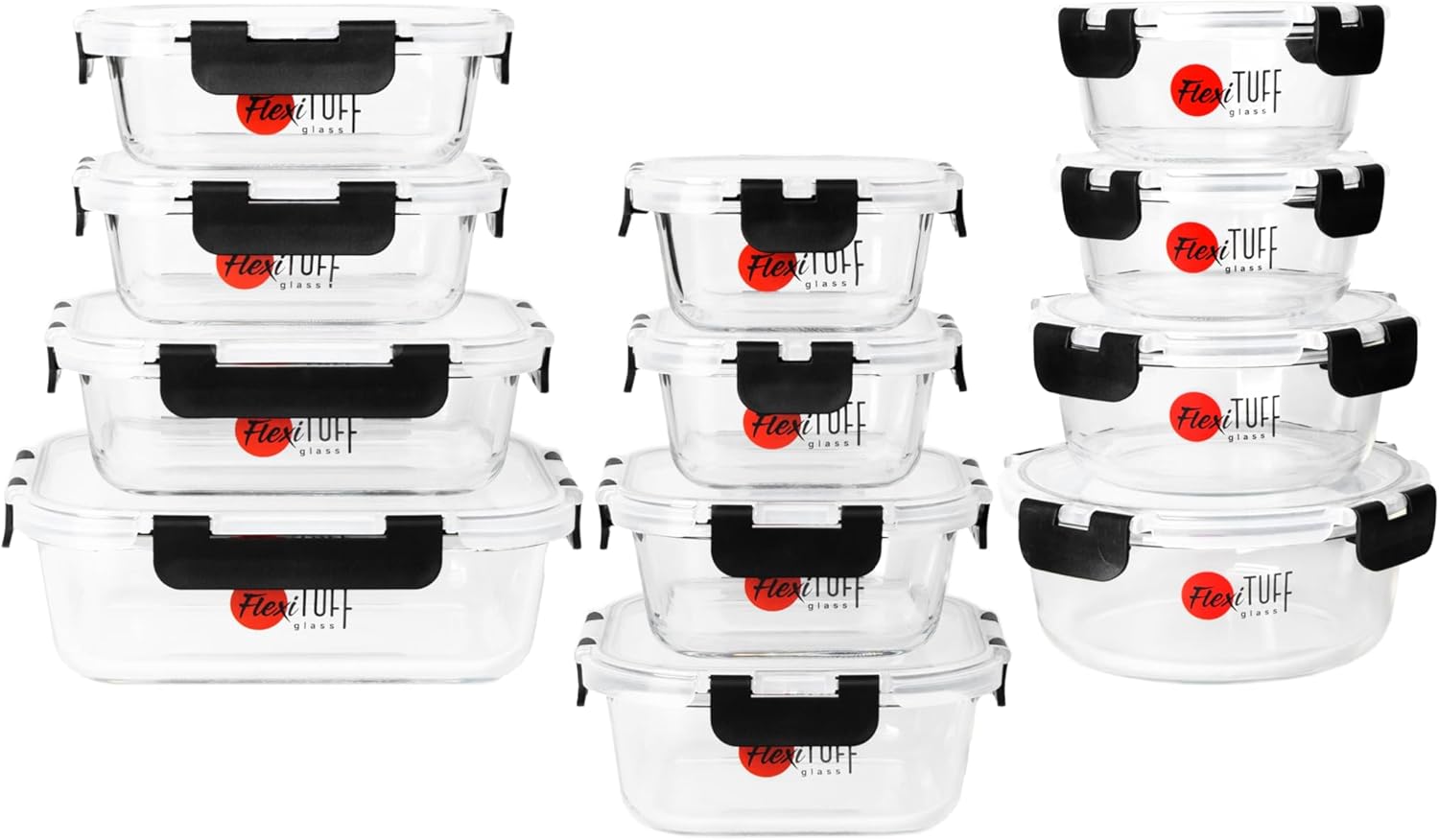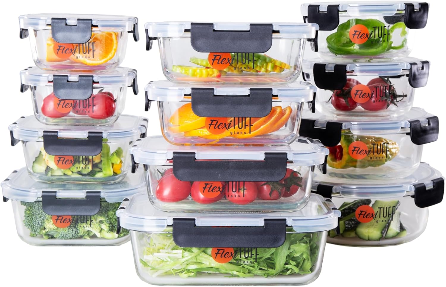 24pcs Set Food Storage Containers (12 Airtight & 12 Lids) | Glass Meal Prep Containers | Lunch Box | BPA Free, Leakproof Lids, Dishwasher, Microwave & Freezer Safe for Kitchen