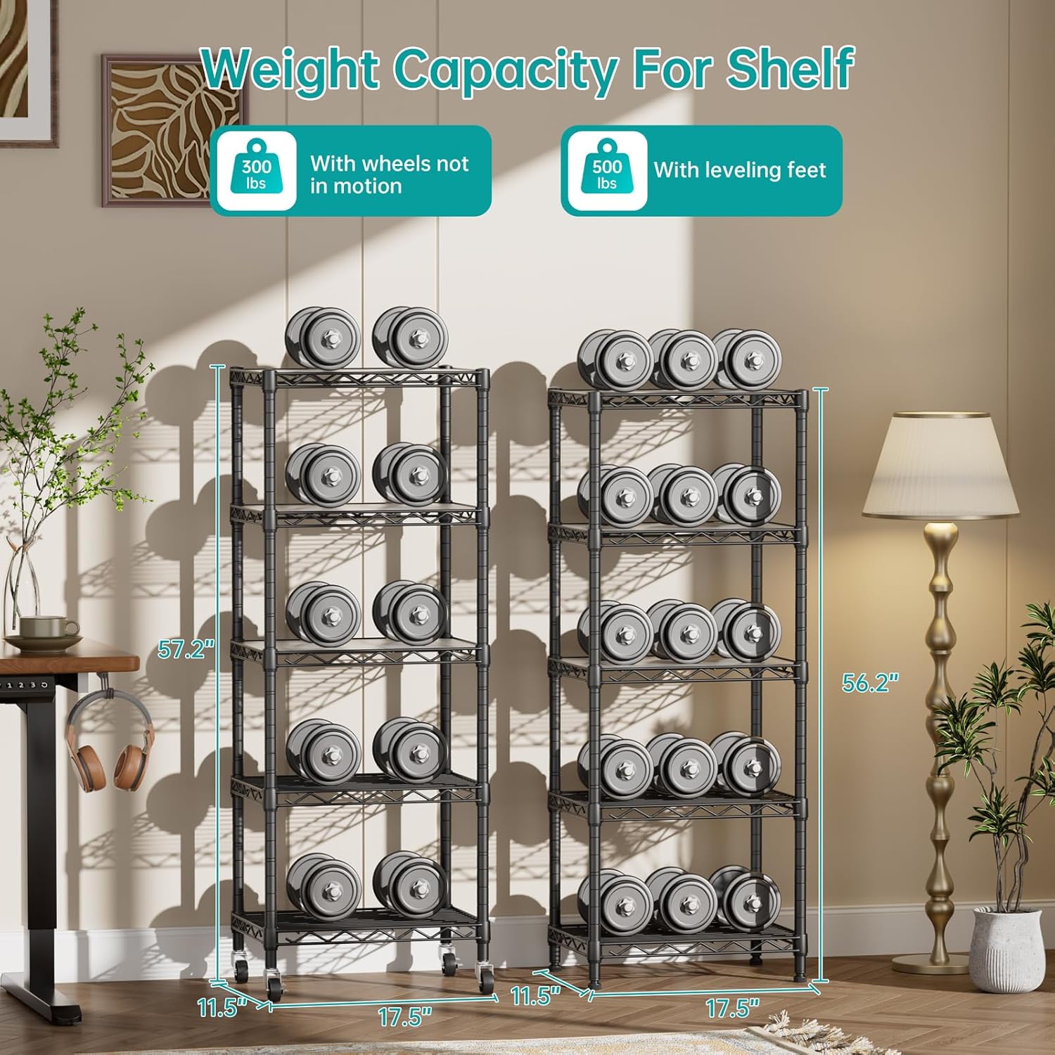 - Convenient Home Storage: Metal wire shelves with adjustable spacing (11.5”D X 17.5”W X 57”H) make perfect for narrow spaces or room corners such as kitchens, bathrooms, laundry rooms, balconies, garages, entries, or offices.