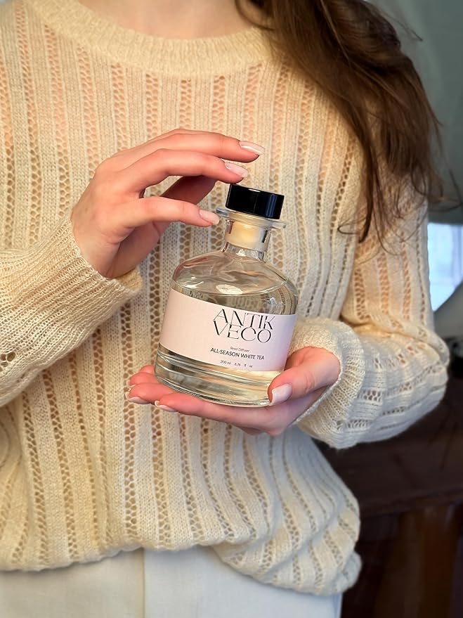 - All-Season White Tea Reed Diffuser: includes an elegant glass bottle, 8 high-quality rattan diffuser reeds, and a refined blend of essential oils – beautifully packaged for immediate use or gifting.