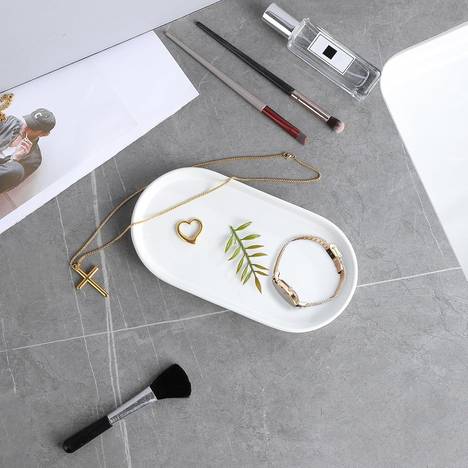 - 【Material】Eyrozia Soap Dispenser Tray made of high quality ceramic, lead-free and non-toxic, safe and environmentally friendly, durable. The smooth surface is easy to clean, and the rounded angles with raised walls provide both elegance and protection against spills.