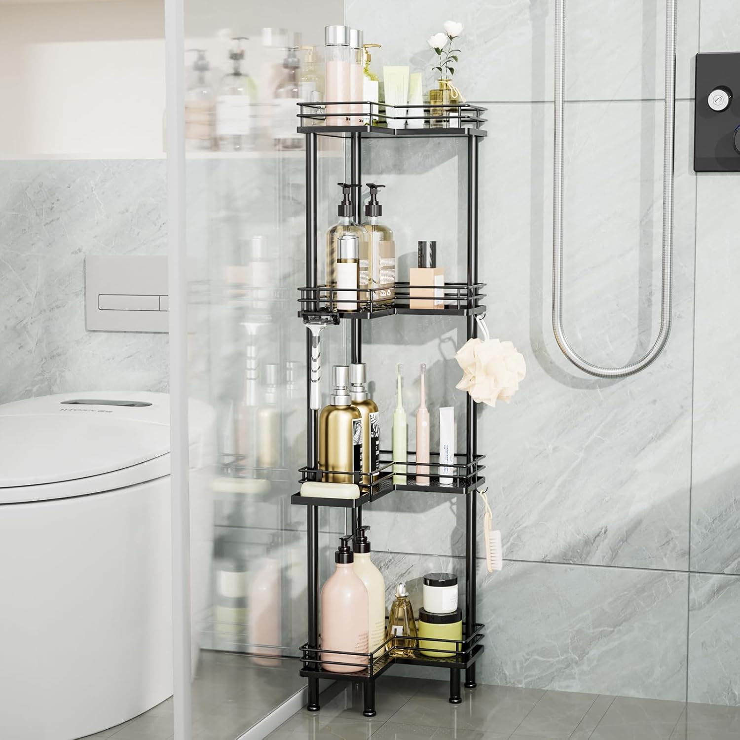 - [Ample Storage for All Essentials]: This 4-tier corner shower rack boasts a large capacity to store everything you need, from bulky bottles to daily shower essentials, ensuring easy access and a well-organized space