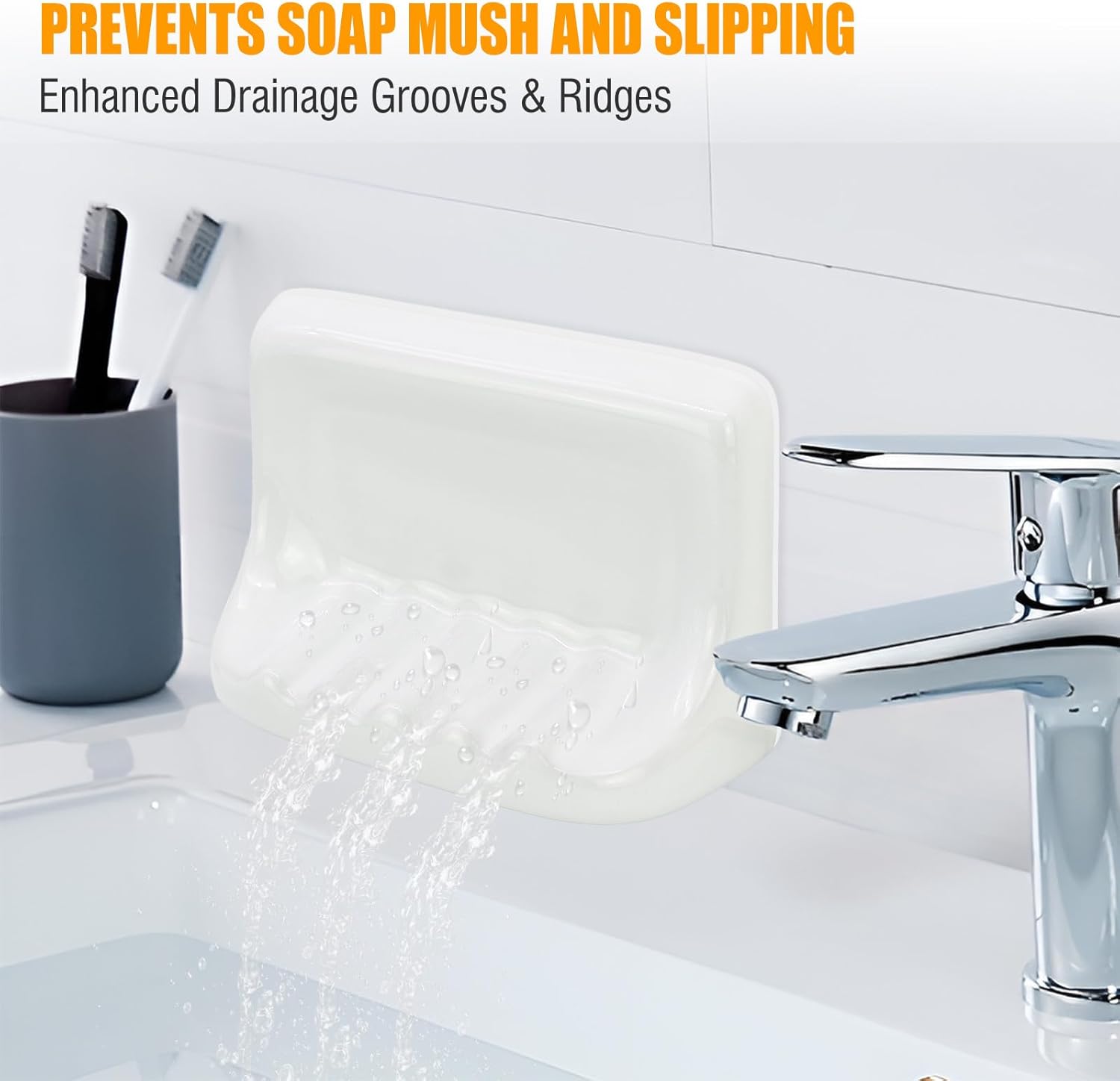 - Enhanced Drainage Grooves & Ridges - Keep Soap Dry and Secure: Say goodbye to slimy soap! Our redesigned soap holder for shower wall has deeper grooves and a smart slope to keep bars dry and grippy. No more chasing wet soap across the shower floor