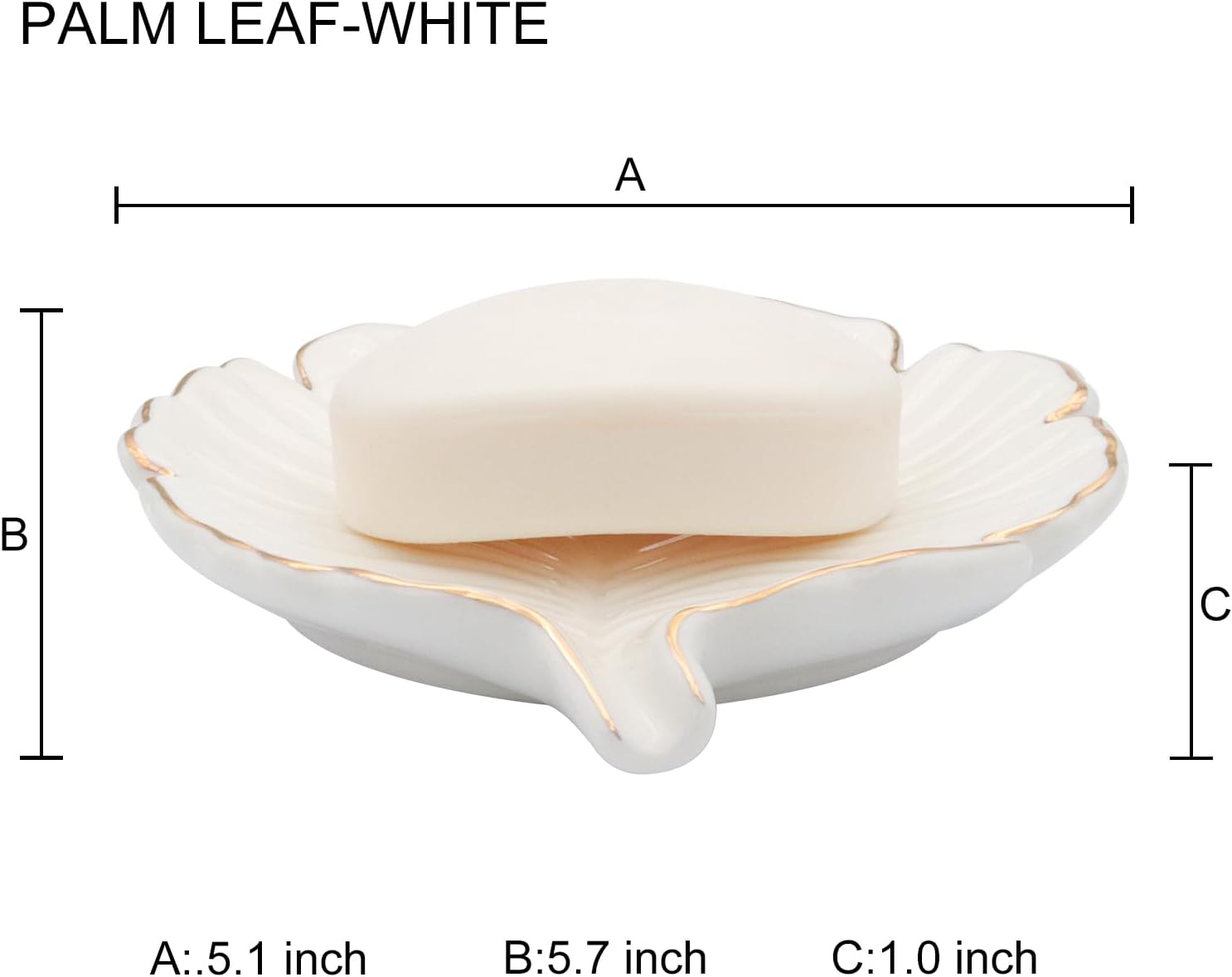 White Leaf Bathroom Soap Dish,Ceramic Soap Dish Holder in Palm Leaf Style,Self Draining Design and Used to Hold Various Small Bathroom and Kitchen Accessories