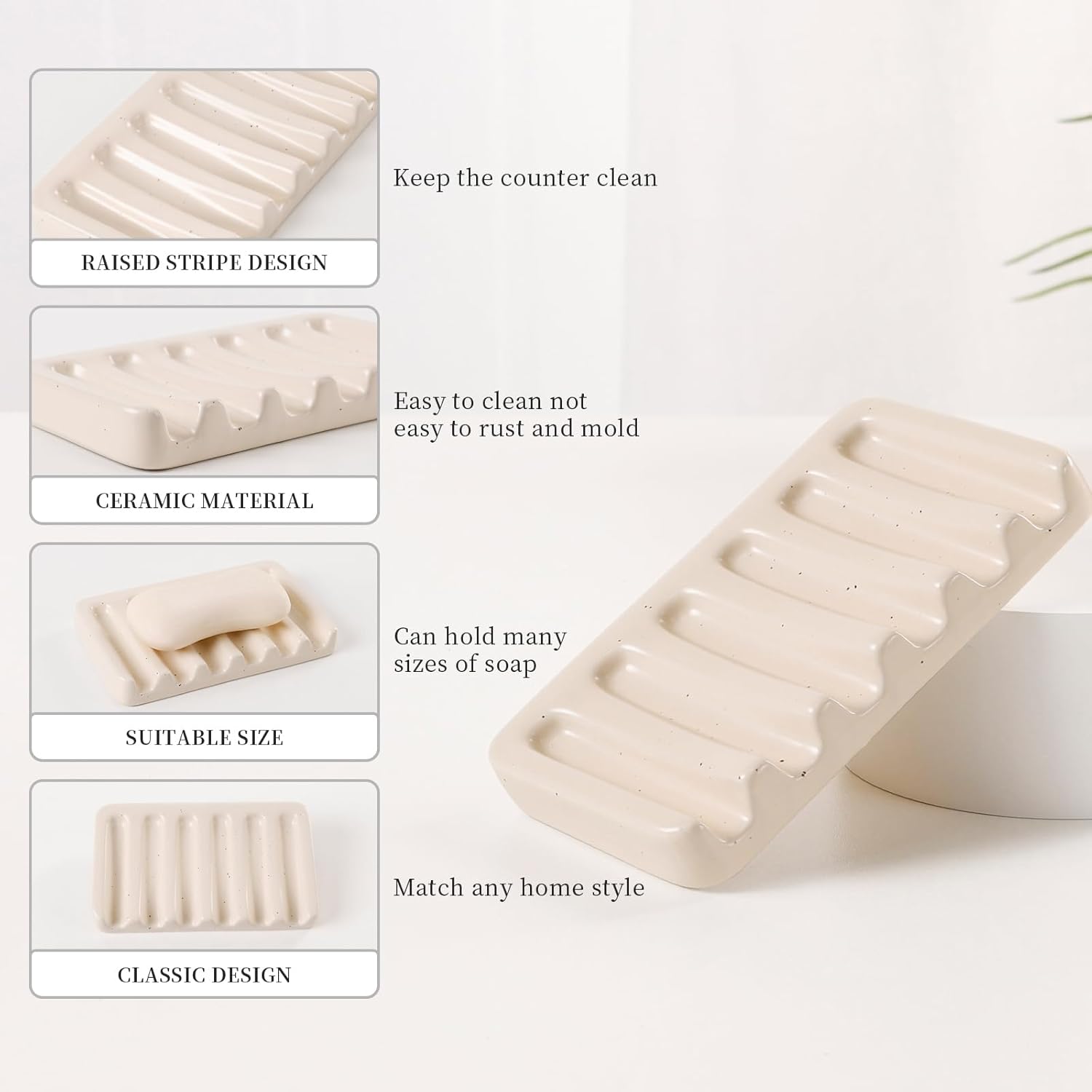 - Premium Ceramic: Our bath accessories set is made from premium ceramic, ensuring durability and resilience against daily use. It features a smooth, polished finish that is easy to clean and retains its charm in a busy bathroom for years.