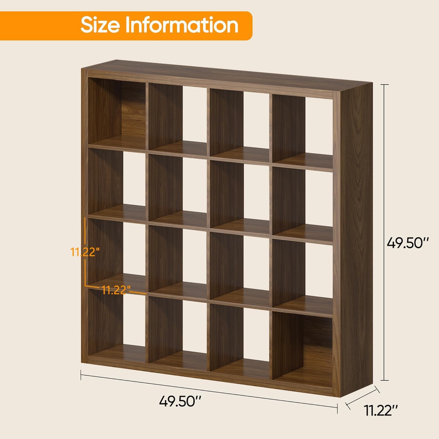 Bookshelf with Storage Bins, 16-Cube Storage Organizer Sturdy Wooden Cube Bookcase Horizontal Bookshelf with Storage, Furniture for Living Room Bedroom Office, Classic Oak