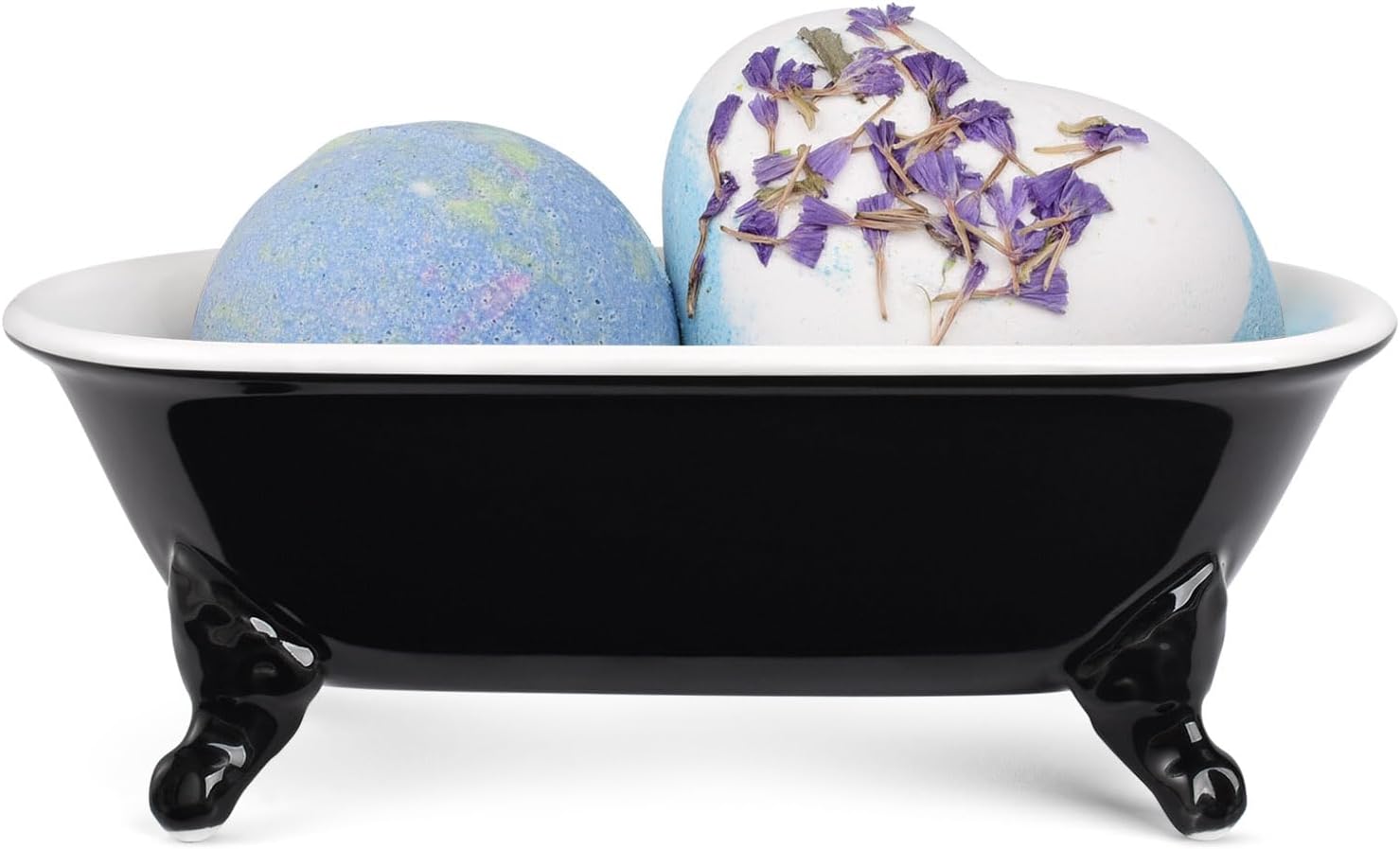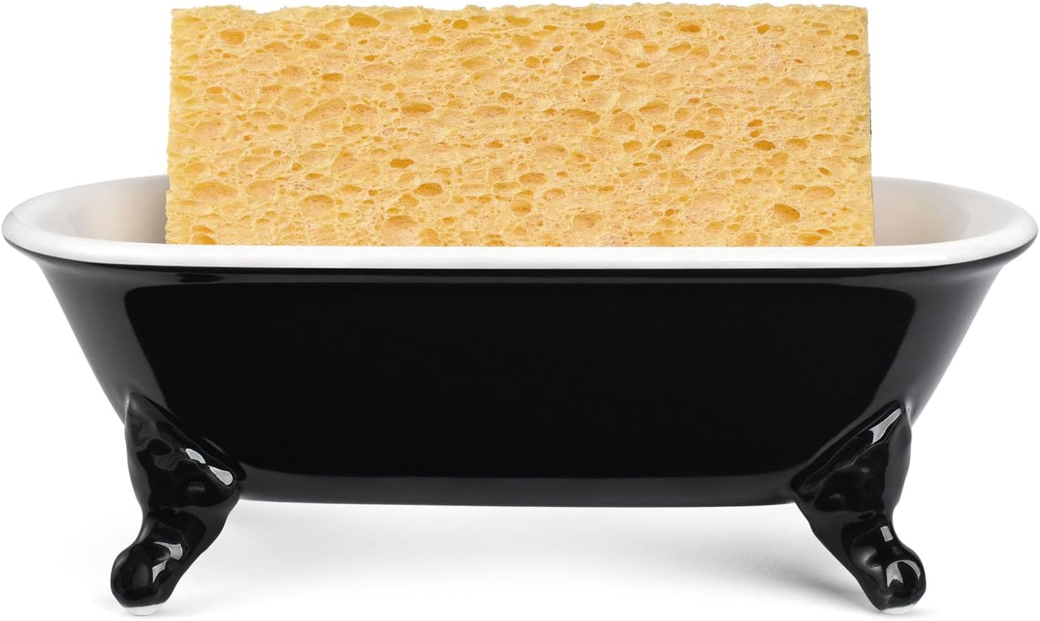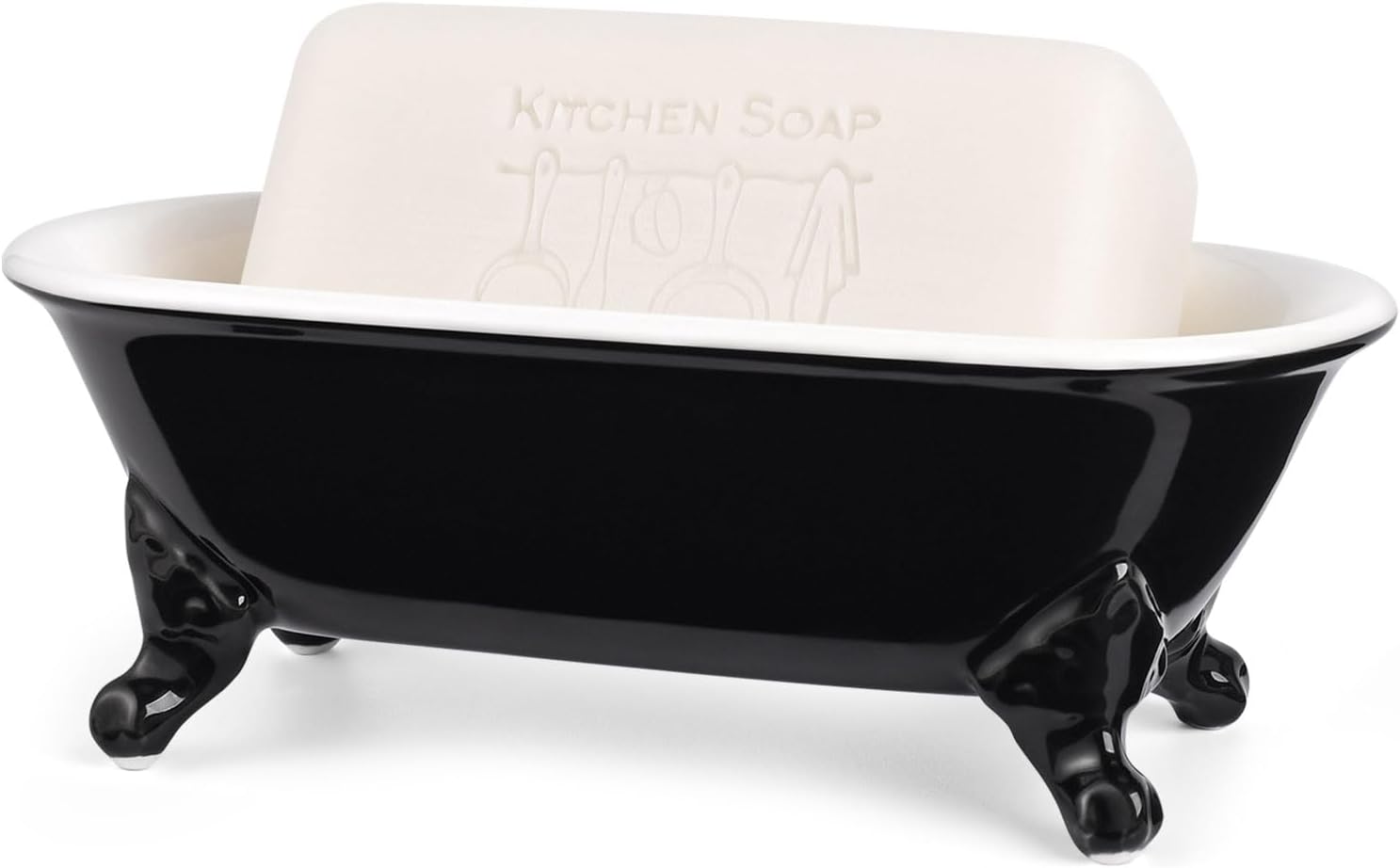 6.5" Ceramic Mini Decorative Clawfoot Bathtub Bar Soap Dish, Kitchen Sponge Holder and Shower Tray for Bathroom, 1 Pack(Black)