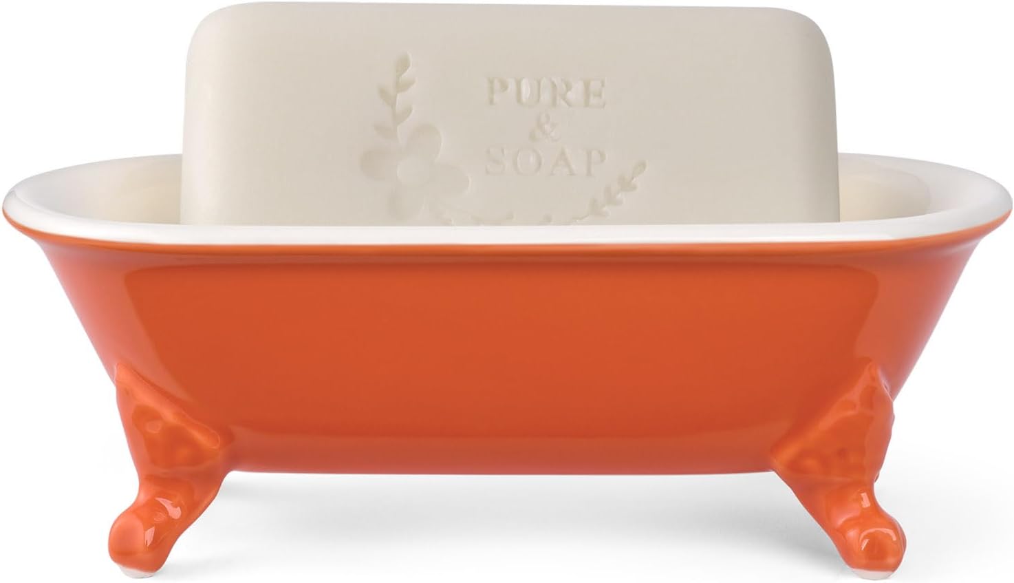 - Style: This ceramic soap dish is inspired by a vintage claw-foot bathtub and features a distressed white modern finish with two tone colors. this soap dish will fit perfectly in any bathroom sink or kitchen countertop.