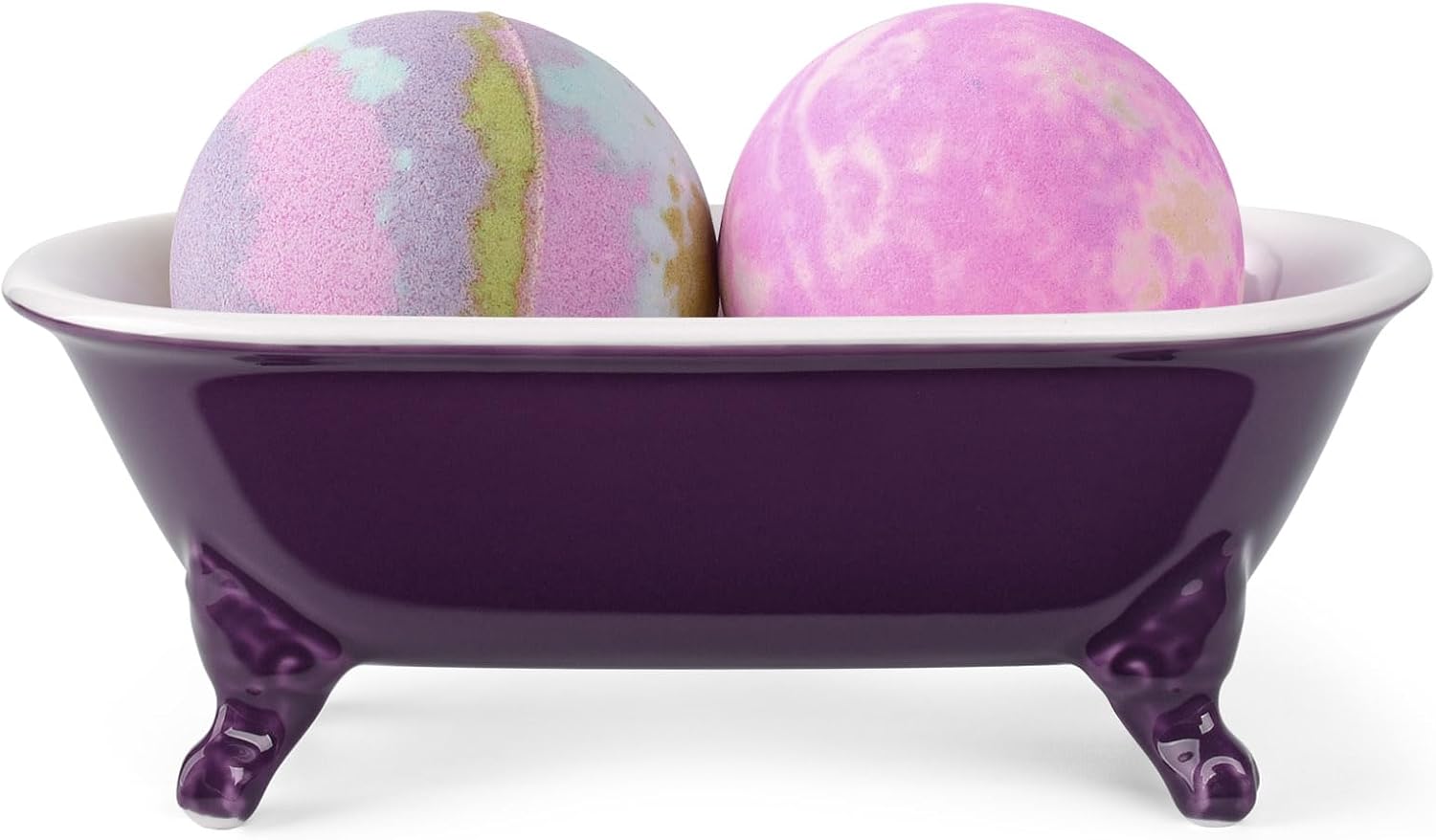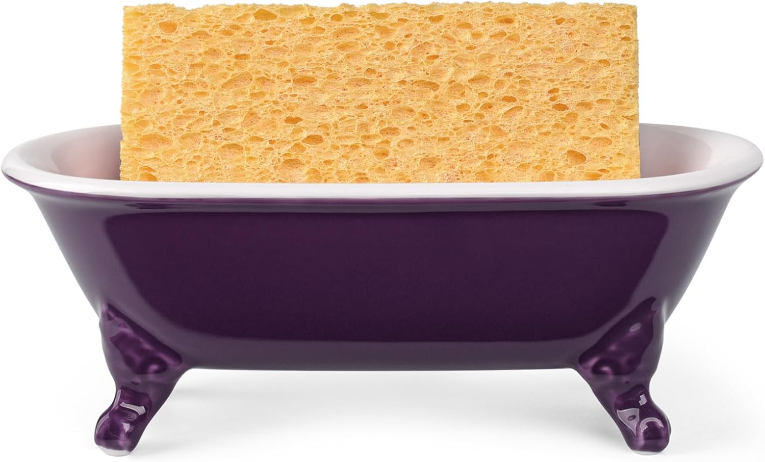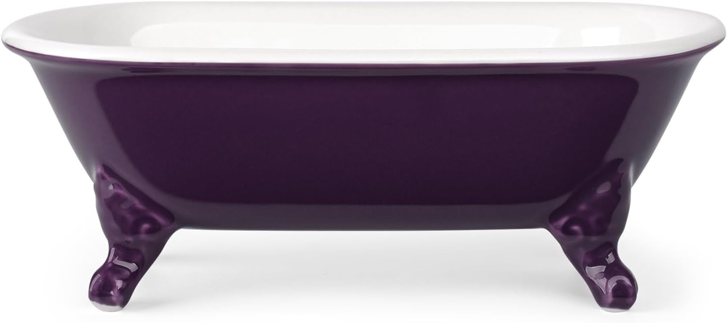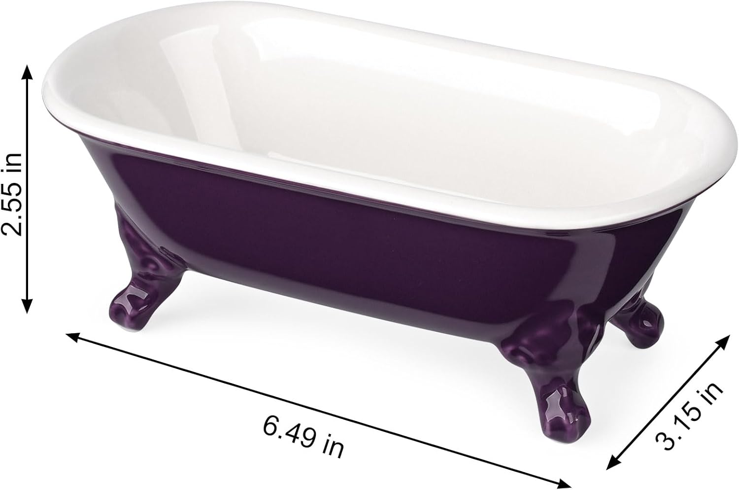 6.5" Ceramic Mini Decorative Clawfoot Bathtub Bar Soap Dish, Kitchen Sponge Holder and Shower Tray for Bathroom, 1 Pack(Plum)