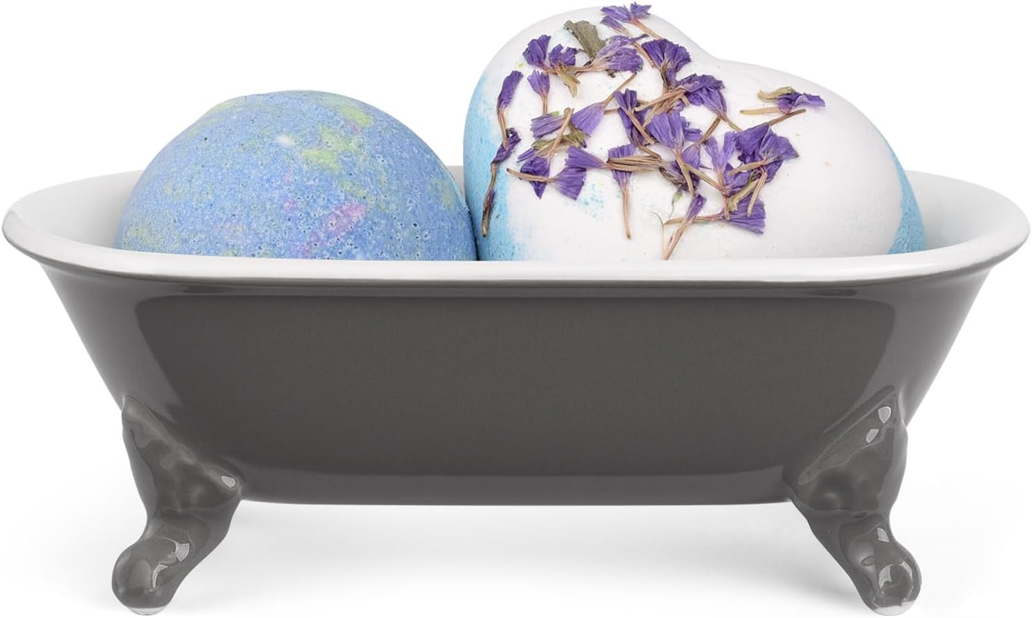 6.5" Ceramic Mini Decorative Clawfoot Bathtub Bar Soap Dish, Kitchen Sponge Holder and Shower Tray for Bathroom, 1 Pack(Stone Gray)