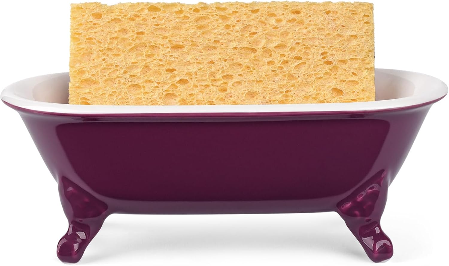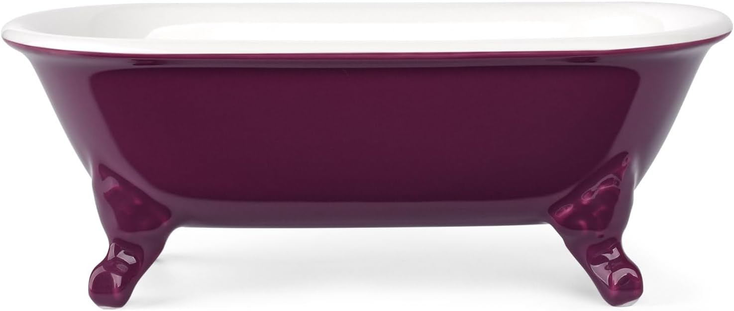 6.5" Ceramic Mini Decorative Clawfoot Bathtub Bar Soap Dish, Kitchen Sponge Holder and Shower Tray for Bathroom, 1 Pack(Burgundy)