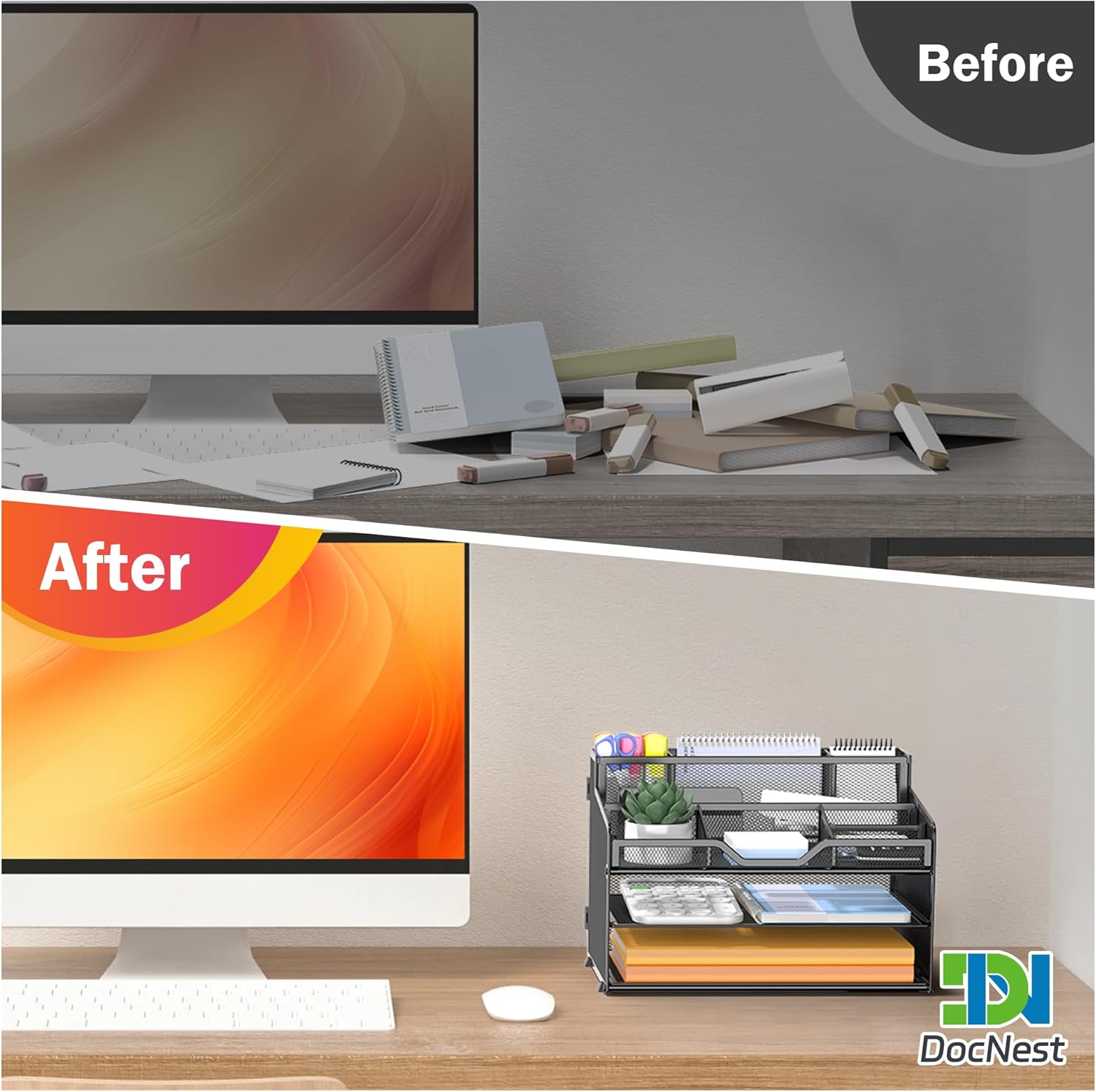 - Easy Assembly and Maintenance: Simplify your office organization with the DocNest tray organizer, which is easy to assemble and maintain. Its modular design allows for quick setup, and the mesh compartments are easy to clean, ensuring that your workspace remains tidy and organized with minimal effort. This desktop organizer is a breeze to maintain, saving you time and effort in keeping your office space pristine