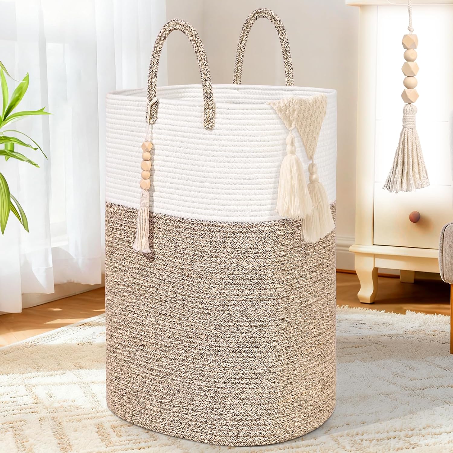 - š[LARGE LAUNDRY HAMPERS WITH WOODEN BEAD TASSEL]: Laundry hamper features a wooden bead tassel that is not only makes baby laundry hamper looks boho, but also matches with different room styles, It can perfect for adding to storage baskets for a classy look!
