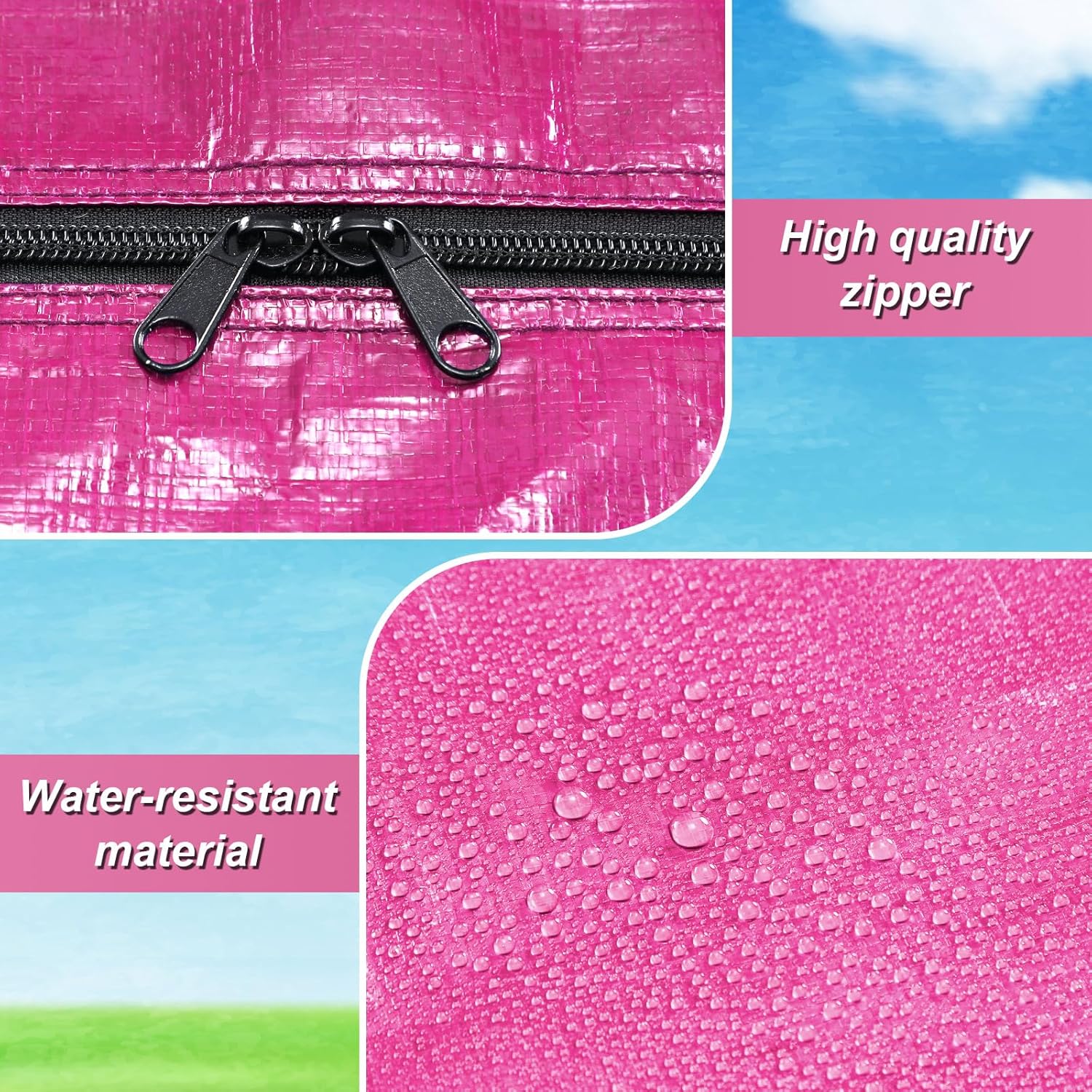 4 Pcs 66 Gallon Large Moving Bags with Zipper and Handles Foldable Storage Duffle Bags Heavy Duty Extra Large Totes for College Dorm Travel Clothes Blankets Bedding Moving (Pink)
