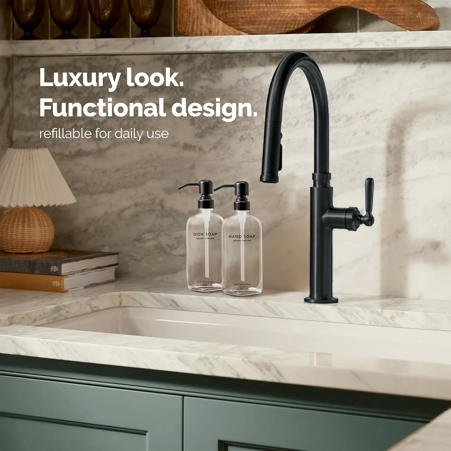 - BUILT TO PERFORM – Each dispenser is topped with a matte black stainless steel pump that’s as durable as it is refined. Rust-resistant, smooth to use, and designed to complement any modern kitchen or bathroom.