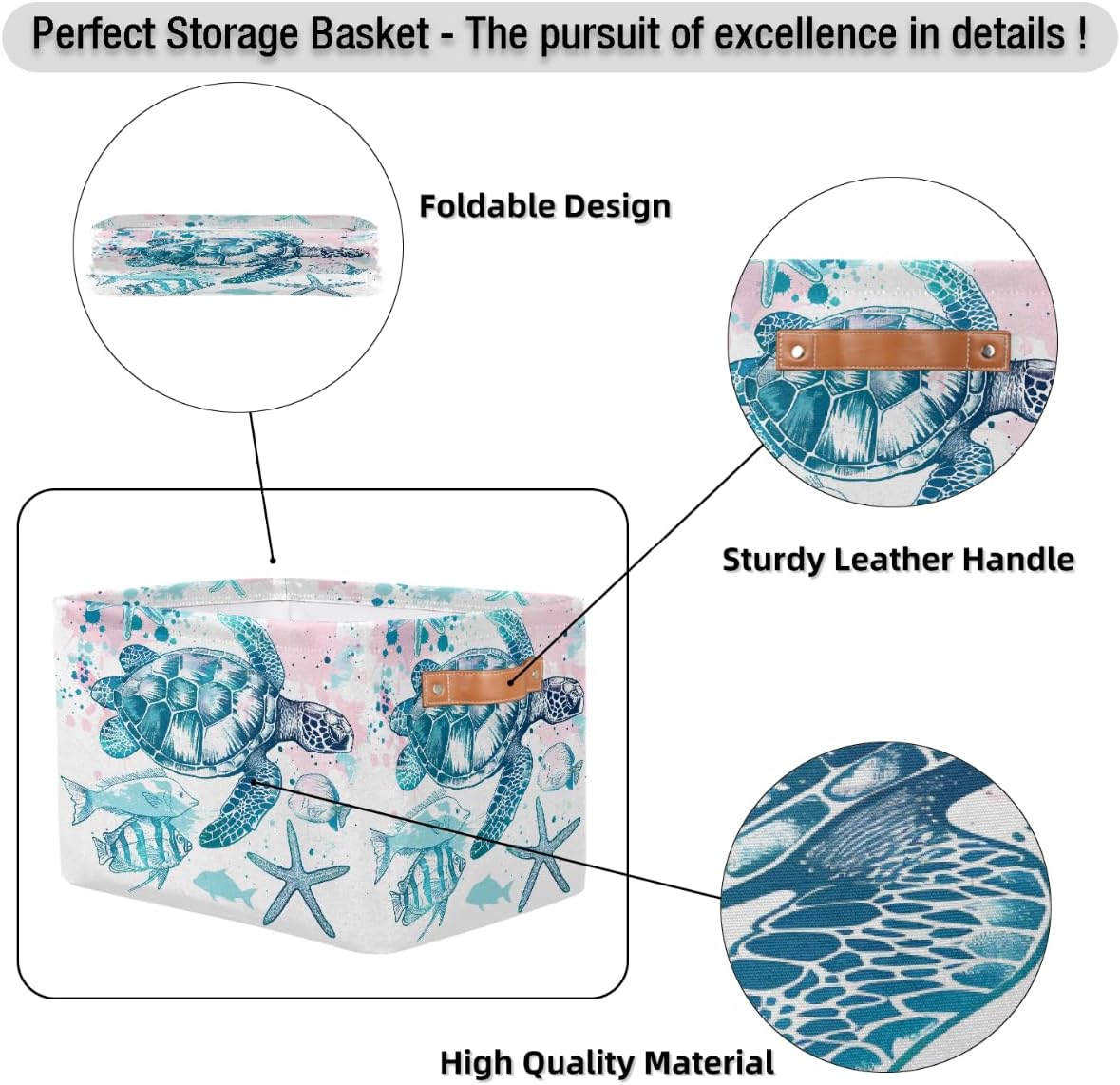 Sea Turtle Starfish Storage Basket for Shelves, Storage Bins with Handles, Collapsible Basket for Organizing, Closet Toy Baskets for Nursery Room, 15x11x9.5 in, Canvas, Ocean Tropical Fish