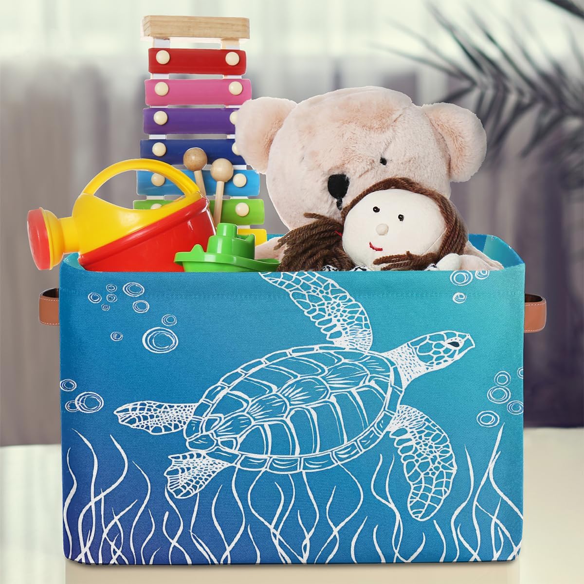Ocean Turtle Storage Basket for Shelves, Storage Bins with Handles, Collapsible Basket for Organizing, Closet Toy Baskets for Nursery Room, 15x11x9.5 in, Canvas, Sea Tortoise