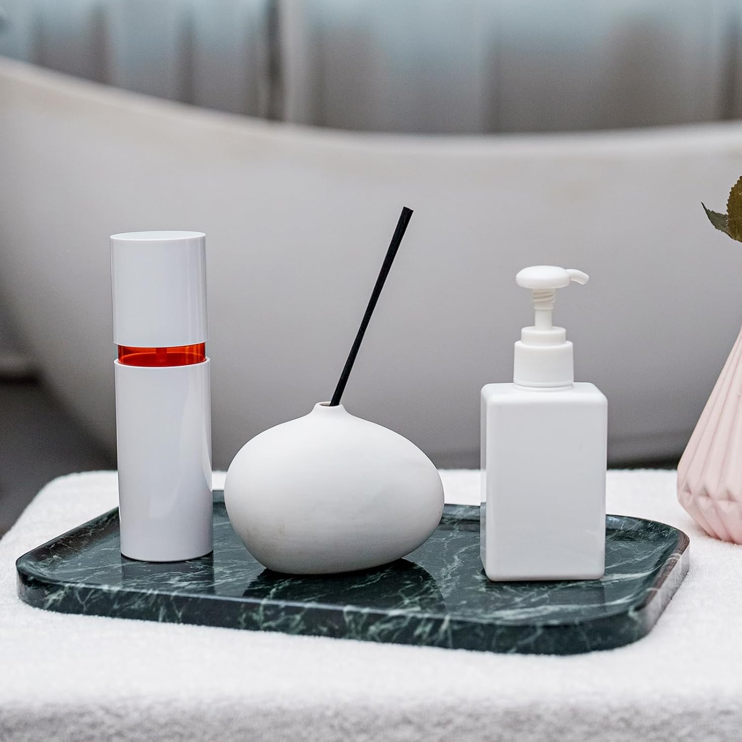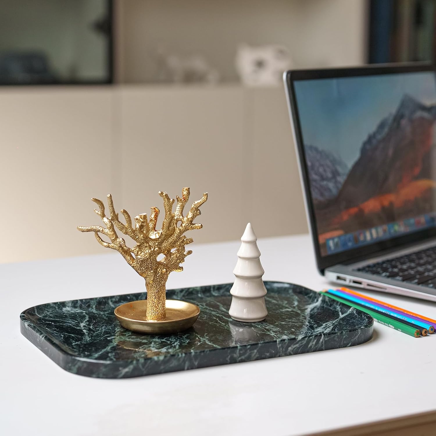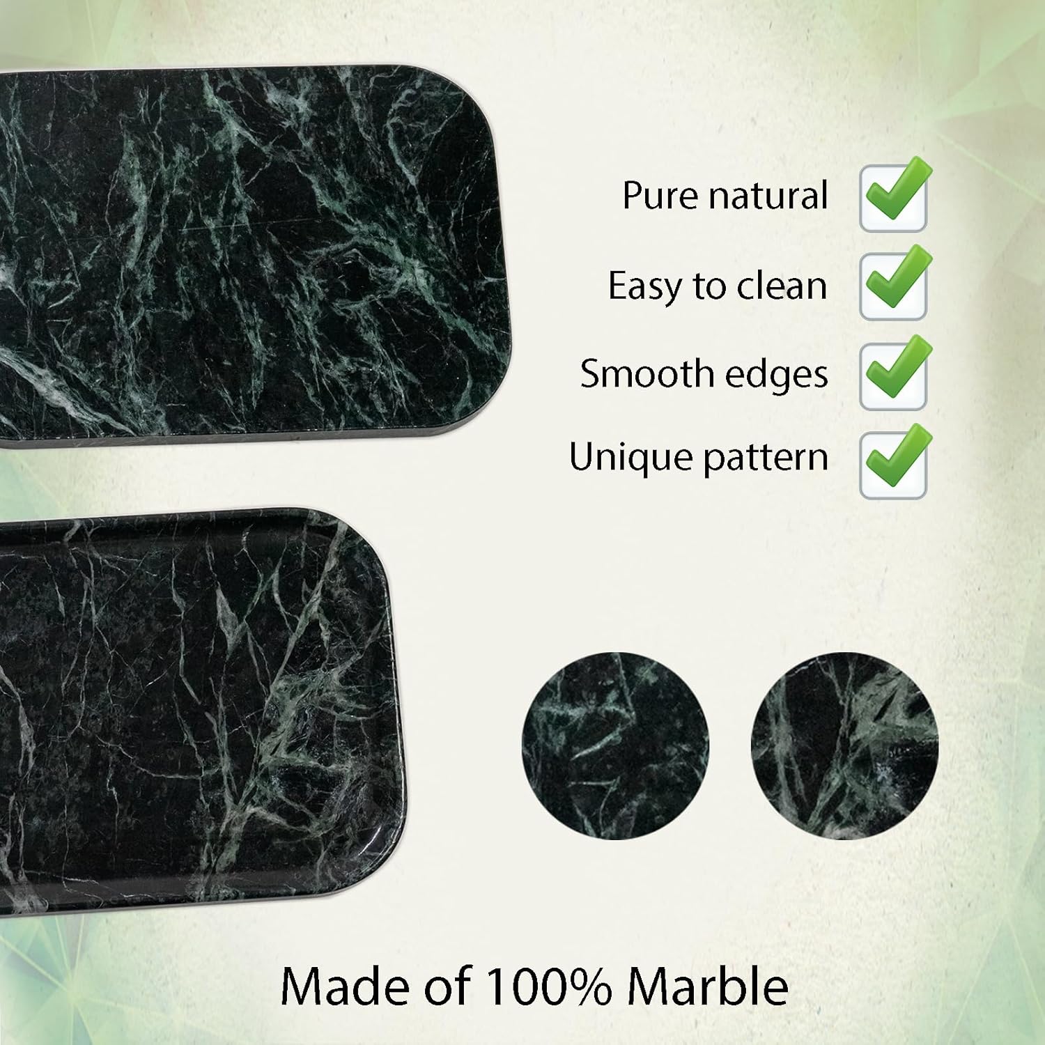 Natural Green Marble Tray 11.8"x7.8"x0.6" | Bathroom Vanity Organizer & Kitchen Countertop Decor | Waterproof Stone Tray for Jewelry, Perfume, Cosmetics Storage (Dark Green)