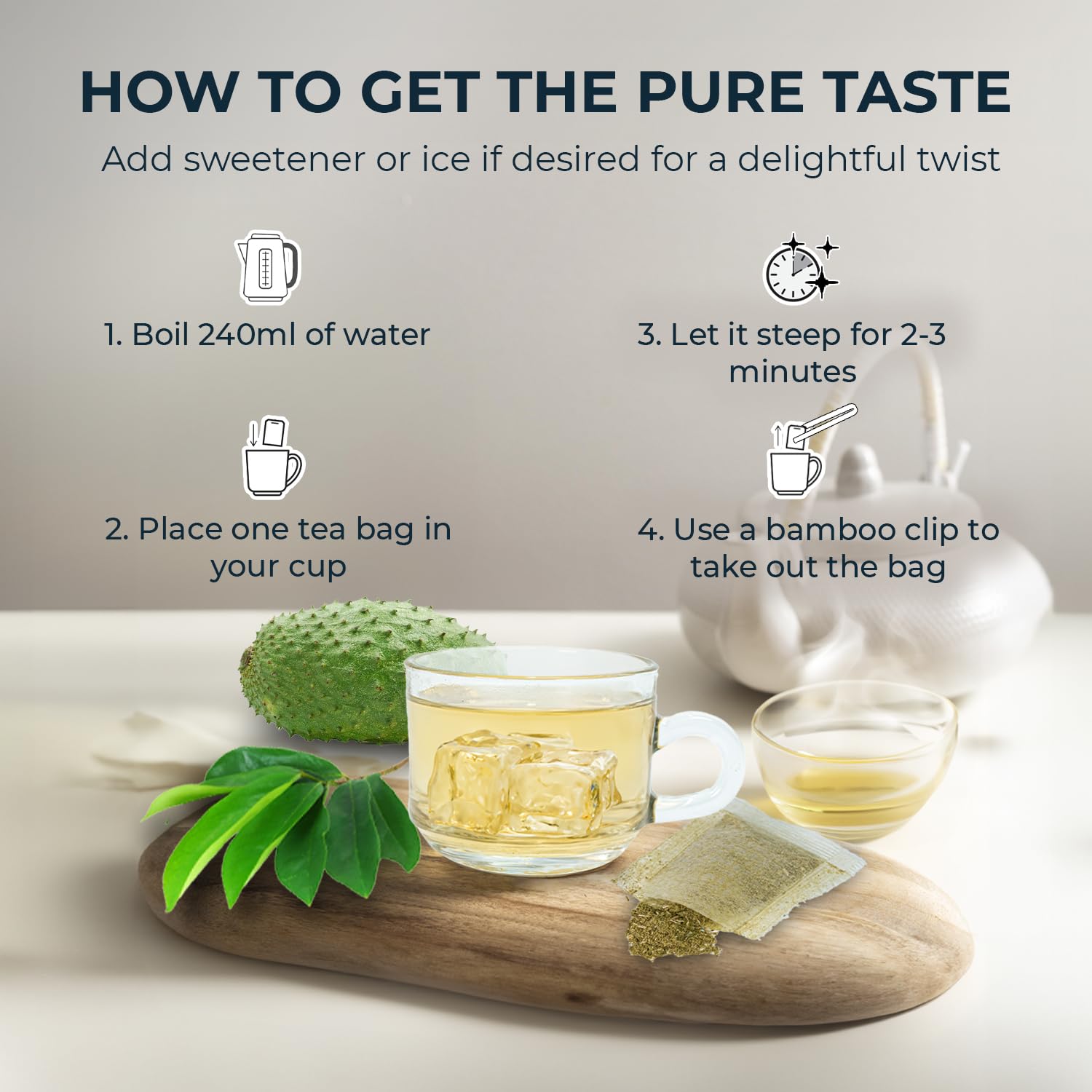 - šļø [BULK PACK] Pack of 15 graviola soursop tea samplers for newbies! For graviola fans, a bulk pack of 90 tea bags will ease your leaf tea craving for months. Both versions have bamboo tongs included!